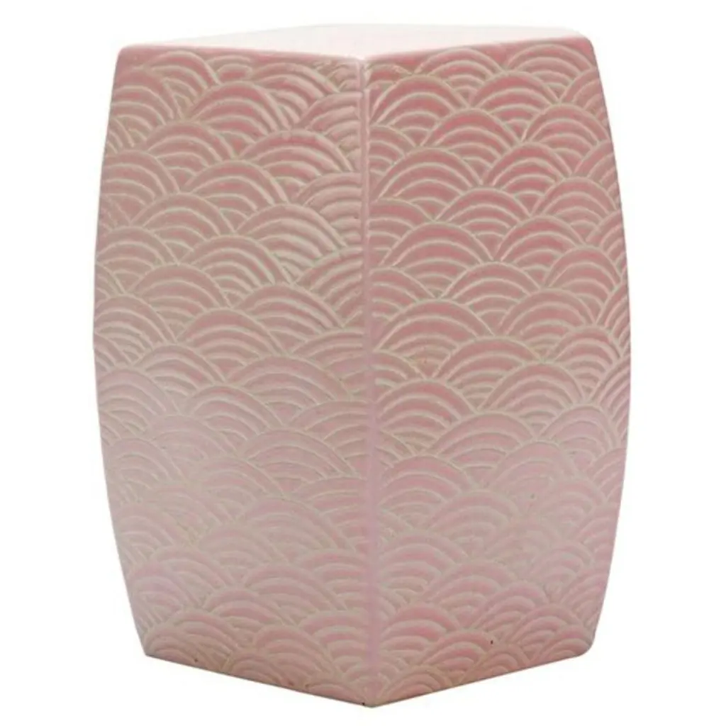 Annabelle Modern Classic Pink Porcelain Seawave Square Outdoor Garden Stool