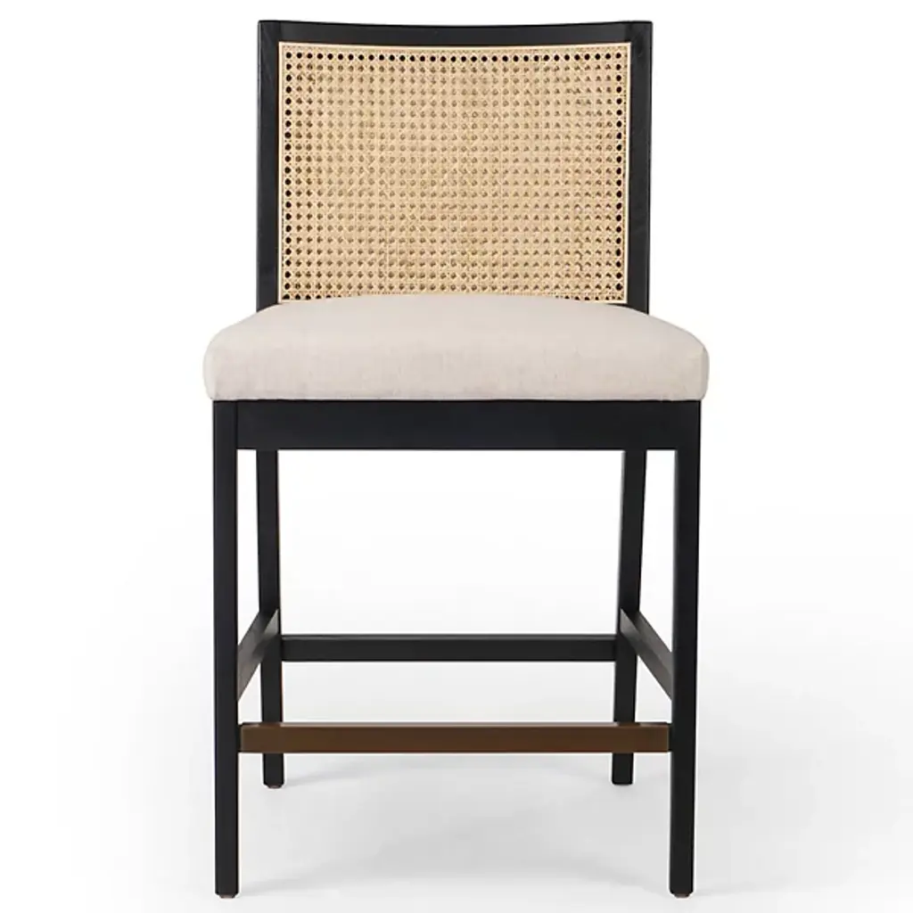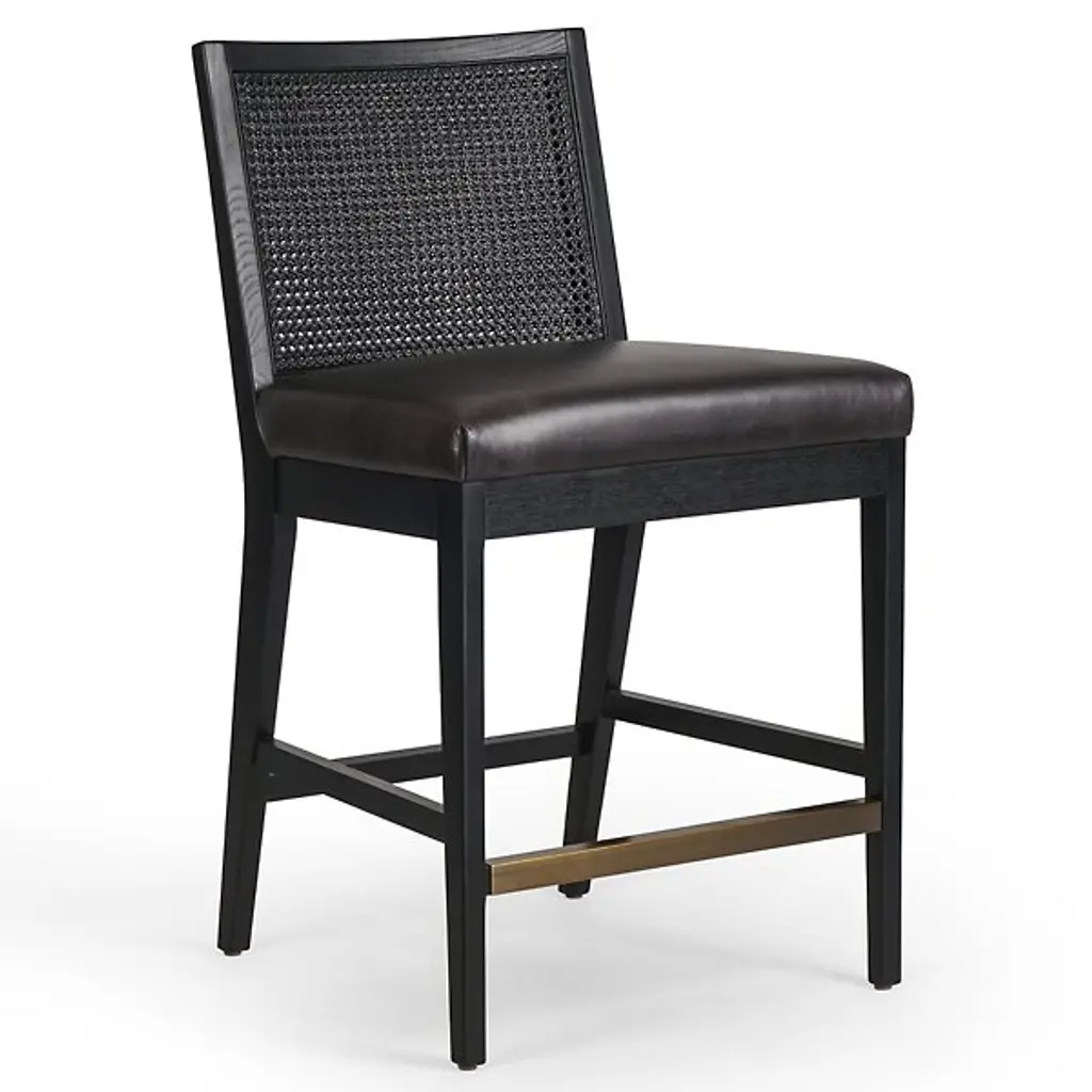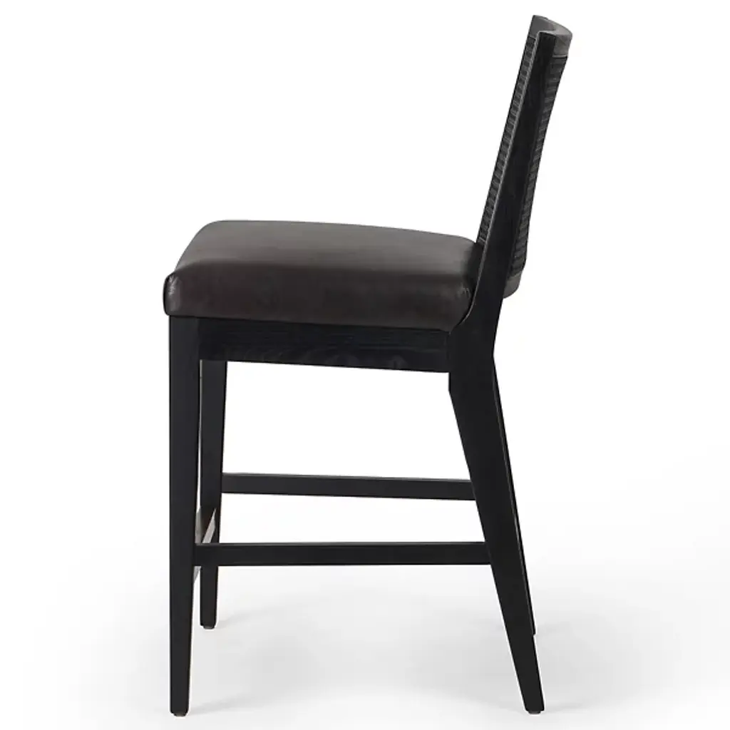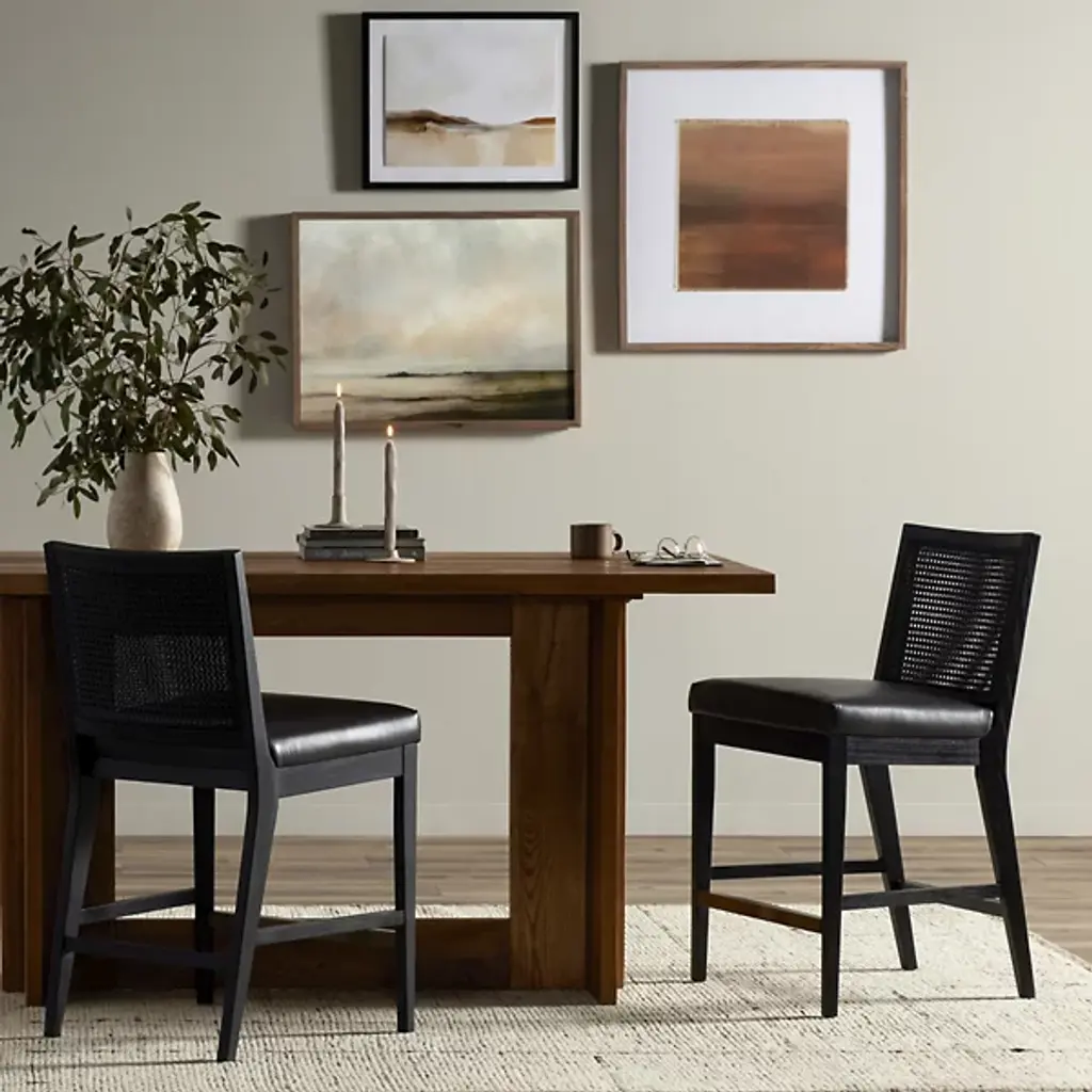 The Antonia Armless Dining Stool by Four Hands showcases a chic design that is perfect for the modern dining experience. The stool features a stunning silhouette that beautifully highlights the textural cane inlay, creating a visual masterpiece that exudes sophistication. The stool’s top-grain leather seating adds an extra touch of elegance and comfort, while a brass kick plate provides a striking contrast and additional foot support. This stool is perfectly sized for counter or bar seating, easily elevating the locale’s aesthetic.
