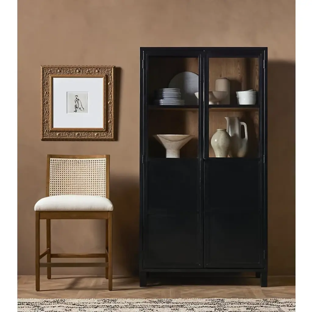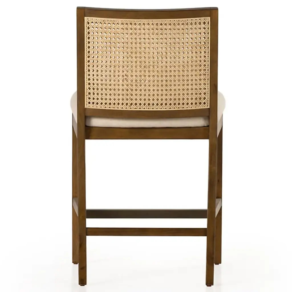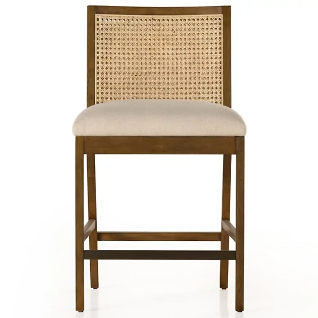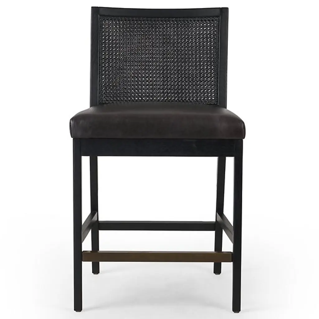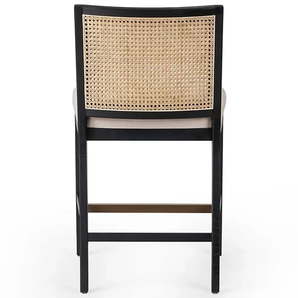 The Antonia Armless Dining Stool by Four Hands showcases a chic design that is perfect for the modern dining experience. The stool features a stunning silhouette that beautifully highlights the textural cane inlay, creating a visual masterpiece that exudes sophistication. The stool’s top-grain leather seating adds an extra touch of elegance and comfort, while a brass kick plate provides a striking contrast and additional foot support. This stool is perfectly sized for counter or bar seating, easily elevating the locale’s aesthetic.