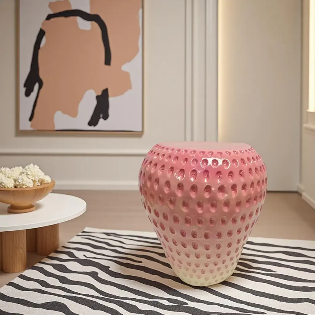 Anybear Strawberry Fruit Stool, 13.4" Oversized Resin Stool, Side Table, Home Decor Plant Stand, Pink