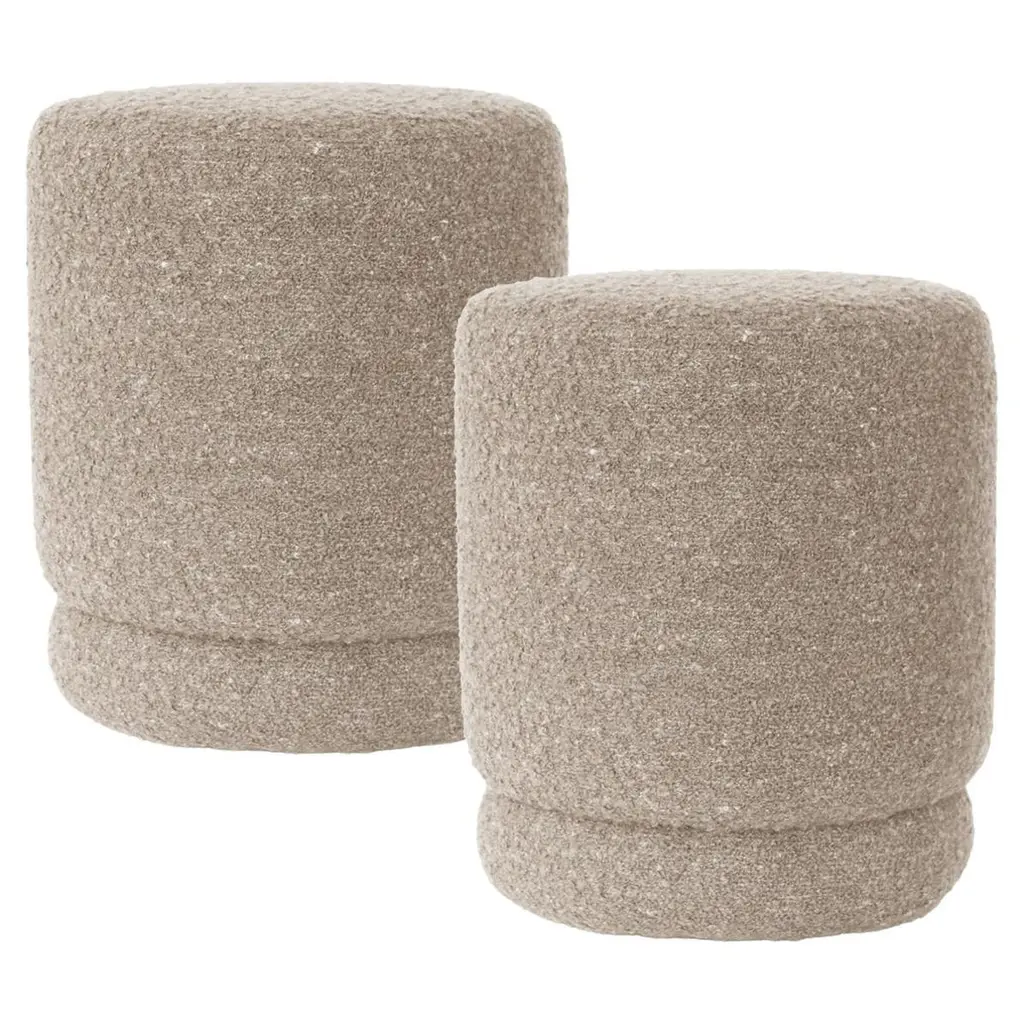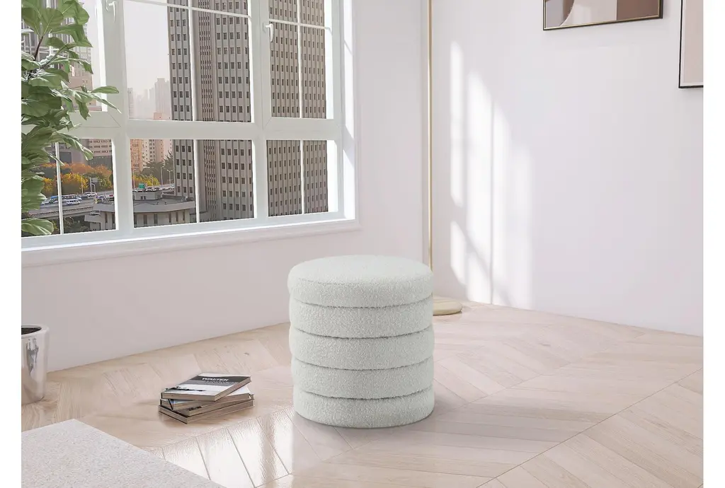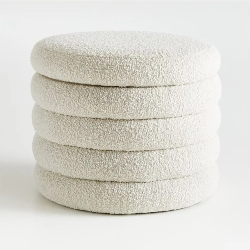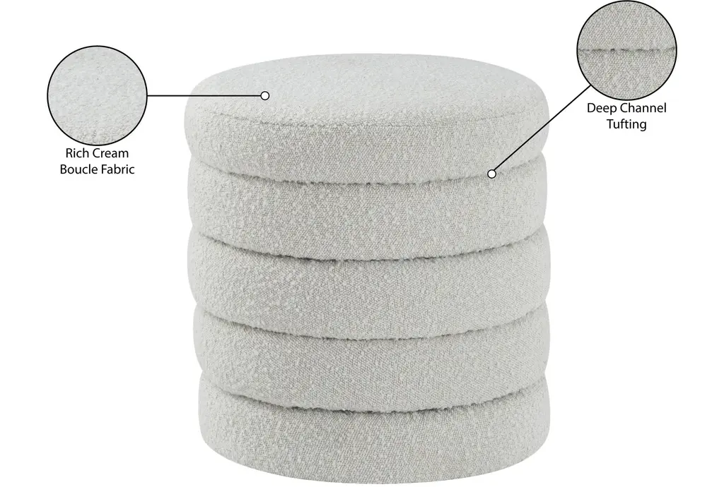 Aphia Cream Boucle Fabric Round Upholstered Ottoman / Stool