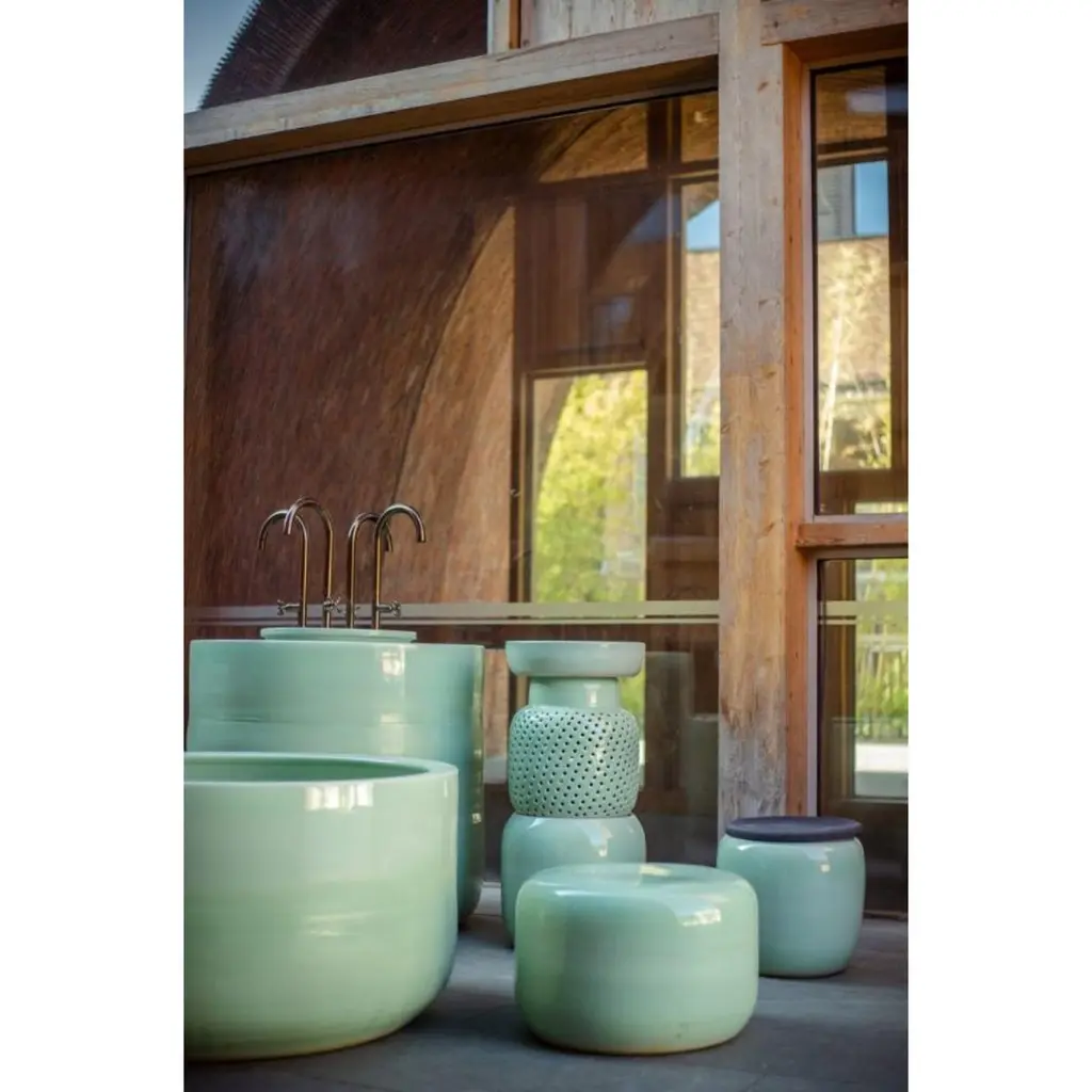 Aqua Botanica Step stool by WL CeramicsDesigner: Edward van VlietMaterials: PorcelainDimensions: H36 x Ø56 cmAt WL CERAMICS we make porcelain with passion. We are a family run company based in Jingdezhen, China, the birthplace of porcelain manufacturing. Since 1993, we have been producing decorative porcelain objects based on centuries of tradition and craftsmanship.While we have mastered many manufacturing techniques, we specialise in large wheel-thrown objects such as vases, planters and ceramic furniture. Together with our clients, we design and develop unique products. Whether it is in the pursuit of exclusive dinnerware or a giant porcelain vase, we love to inspire you and turn your ideas into a reality. In addition to working with interior architects, brands and designers, we produce a collection of our own that may be ordered as is or customised to one’s own specifications.