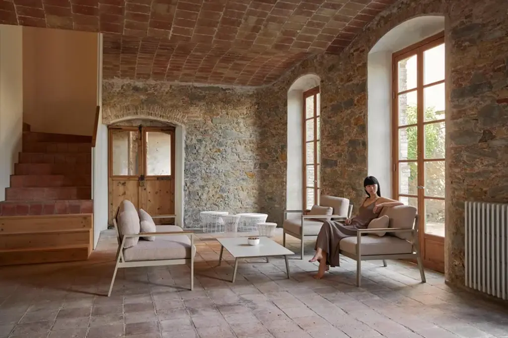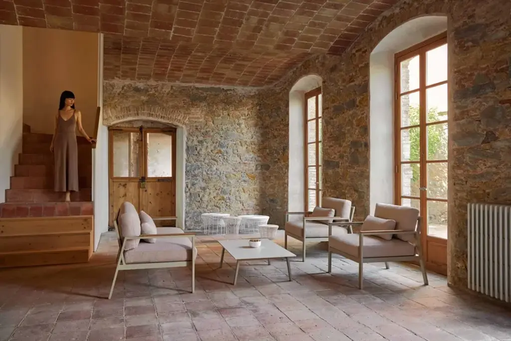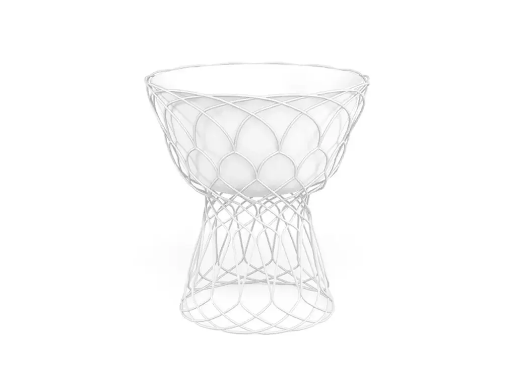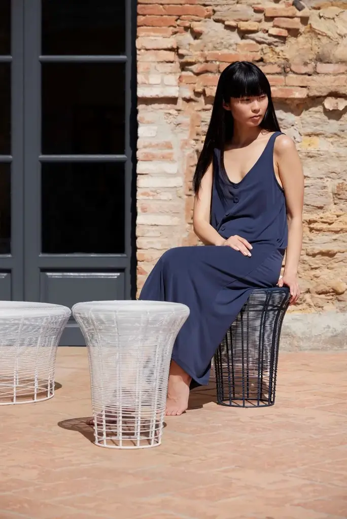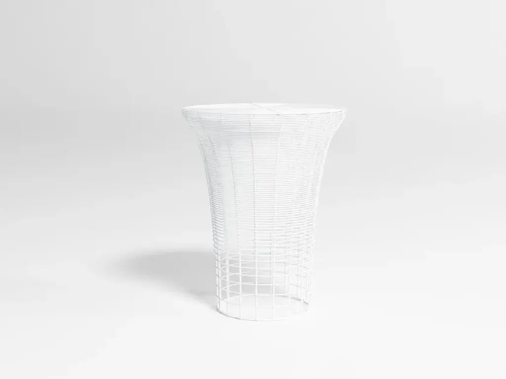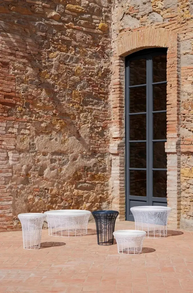 “This collection of stools and low tables is based on a traditional Indian furniture technique of weaving metal wires around a metal frame. The spacing between the wires is gradually widened, creating a gradation effect. A design created through a small change to an existing technique.”Made of thermo-lacquered stainless steel wire. Handmade.*Because they are made entirely by hand, all these items are unique.Collections colour sample: white, agate grey, cement grey, sand, bronze, wine red, blue grey, grey blue, anthracite and black.