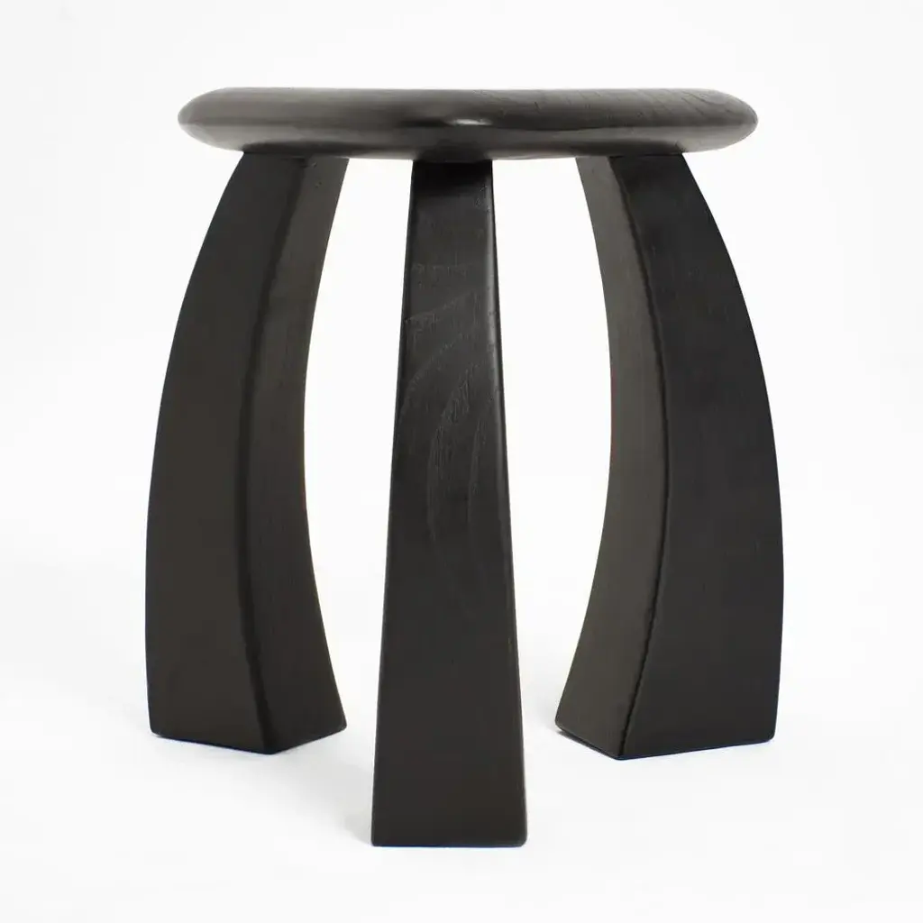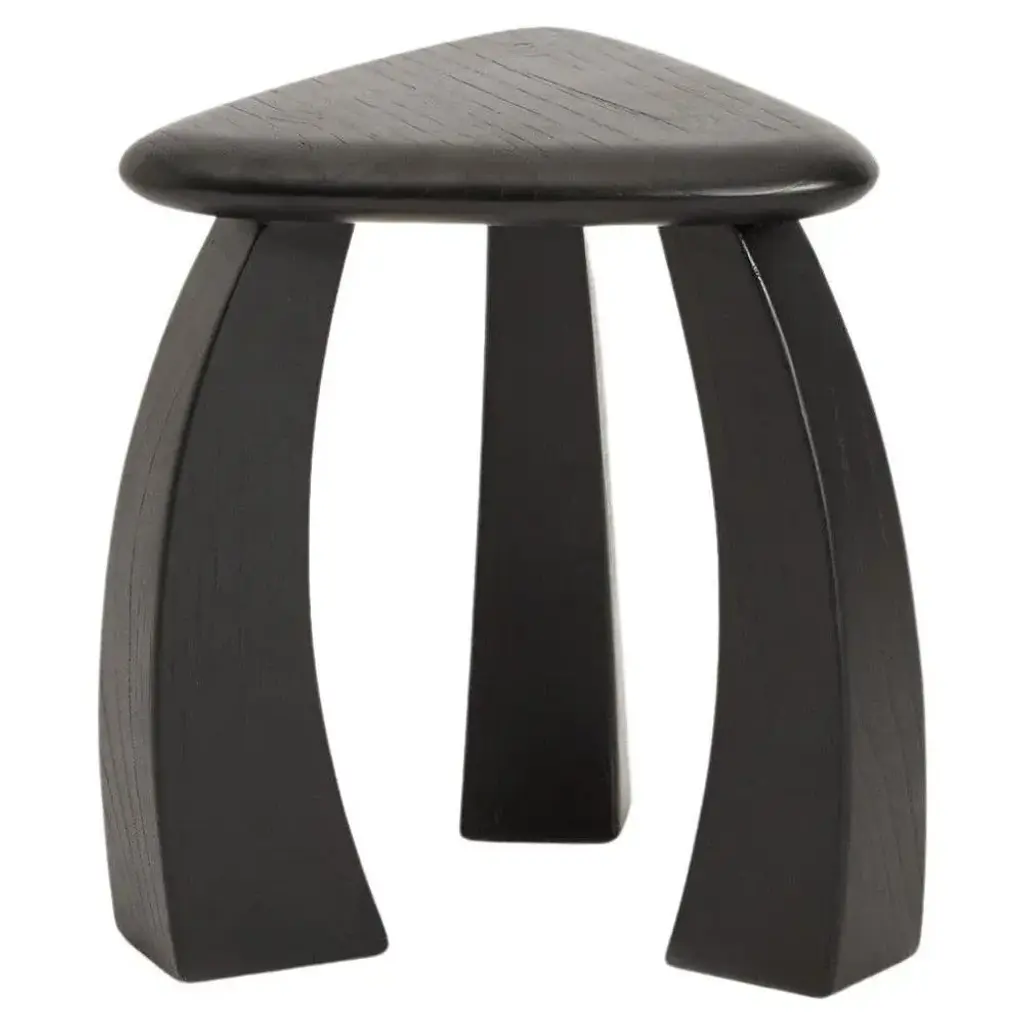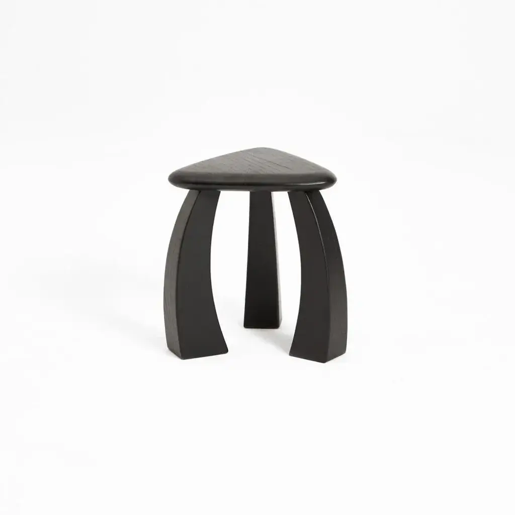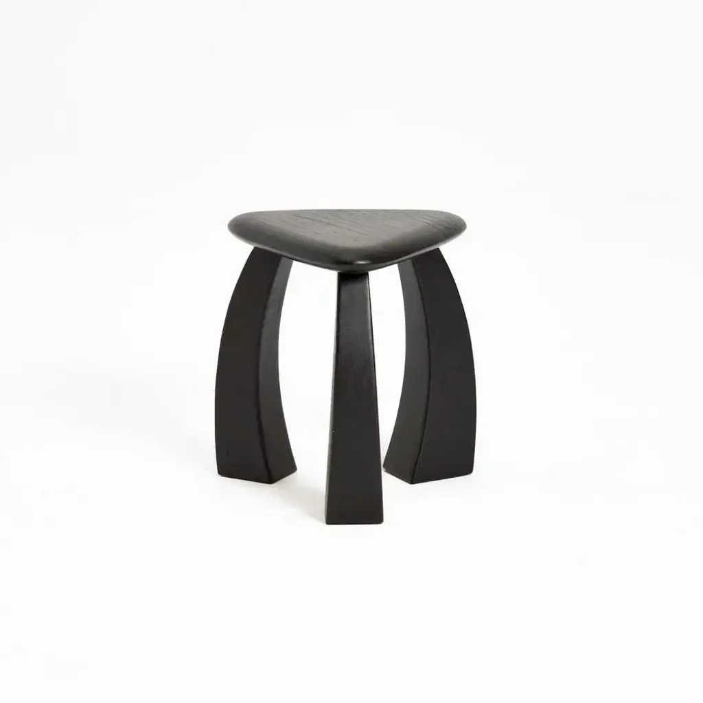 Arc de stool 37 in black chestnut by project 213a dimensions: d 33 x w 33 x h 37 cm materials: chestnut wood. The smaller version of the stool's legs curves inwards towards its triangular seat, fusing to showcase exquisite craftsmanship. The elegant complexion brings about the opportunity to match the stool in any room from a seating fixture in the foyer to a cocktail table near the bath.