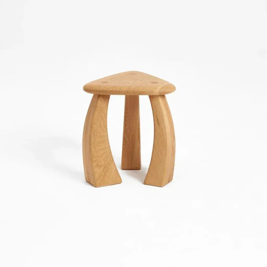 Arc de stool 37 in natural oak by project 213a dimensions: d 33 x w 33 x h 37 cm materials: oak wood. The smaller version of the stool's legs curves inwards towards its triangular seat, fusing to showcase exquisite craftsmanship. The elegant complexion brings about the opportunity to match the stool in any room from a seating fixture in the foyer to a cocktail table near the bath.