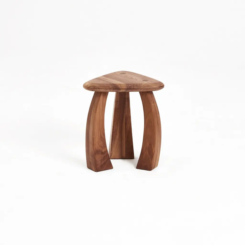 Arc de stool 37 in natural walnut by Project 213ADimensions: D 33 x W 33 x H 37 cmMaterials: Walnut wood. The smaller version of the stool's legs curves inwards towards its triangular seat, fusing to showcase exquisite craftsmanship. The elegant complexion brings about the opportunity to match the stool in any room from a seating fixture in the foyer to a cocktail table near the bath.Project 213A is a European design house founded in 2020 as an idea by four friends linked by a common design philosophy. This Project became reality with the launch in September 2021.The brand’s goal is to create modern as well as unique furniture and home accessories that are timeless with a commitment to work towards a more sustainable future.The name of the brand “Project 213A” refers to a London based address where all four founders each have lived in - at different times throughout their studies.The building is featured prominently within the logo where their home stood, above a launderette.Each product is responsibly manufactured in selected Portuguese factories and family run workshops to provide a considerate way of production while minimising wasteful practices.