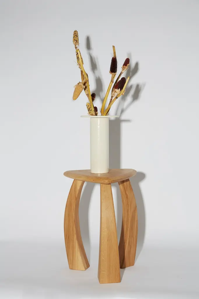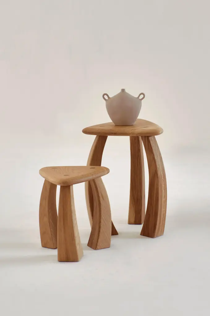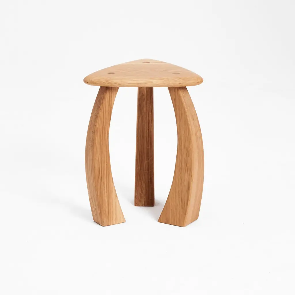 Arc de Stool '52Designed by Project 213A in 2022Side table in solid oak with legs that arch inwards its triangular top. Carved by skilled artisans in northern Portugal.Production lead time: 1-6 weeks depending on stock availability.