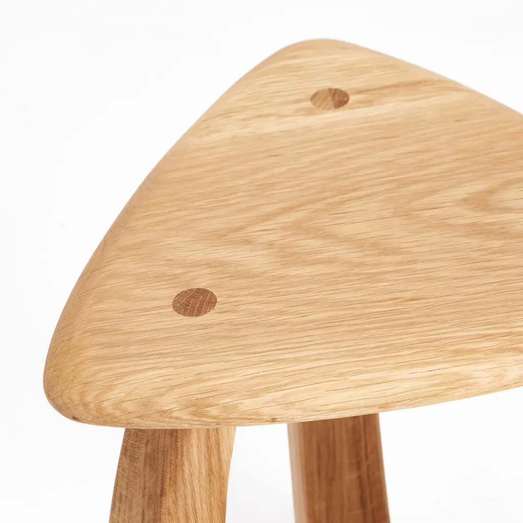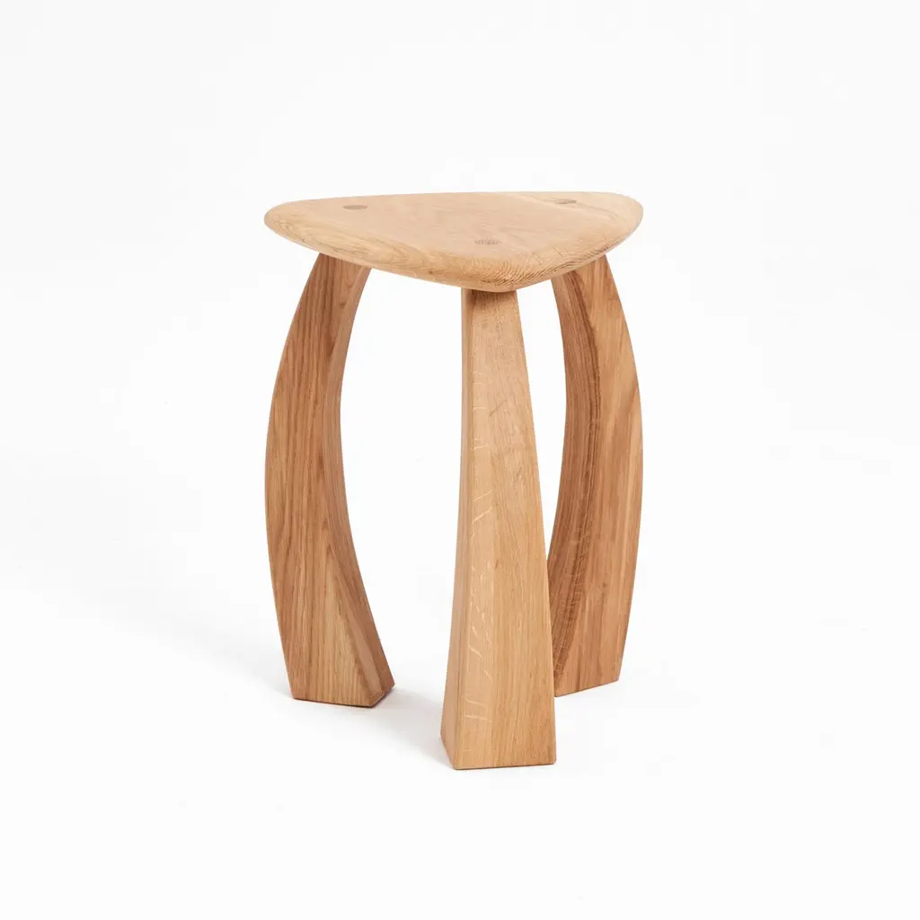 Arc de Stool 52 in Oak by Project 213ADimensions: D 39 x W 39 x H 52 cmMaterials: Oak wood. The taller version of the stool's legs curves inwards towards its triangular seat, fusing to showcase exquisite craftsmanship. The elegant complexion brings about the opportunity to match the stool in any room from a seating fixture in the foyer to a cocktail table near the bath.Project 213A is a European design house founded in 2020 as an idea by four friends linked by a common design philosophy. This Project became reality with the launch in September 2021.The brand’s goal is to create modern as well as unique furniture and home accessories that are timeless with a commitment to work towards a more sustainable future.The name of the brand “Project 213A” refers to a London based address where all four founders each have lived in - at different times throughout their studies.The building is featured prominently within the logo where their home stood, above a launderette.Each product is responsibly manufactured in selected Portuguese factories and family run workshops to provide a considerate way of production while minimising wasteful practices.