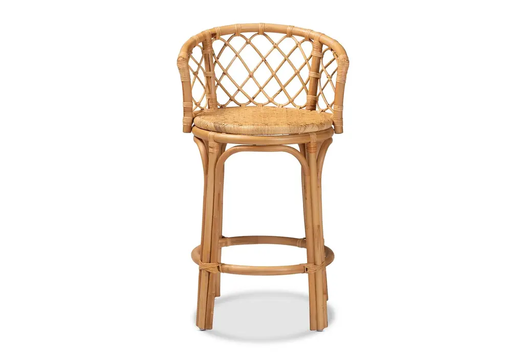 Archie Modern Natural Brown Rattan Woven 26" Counter Height Stool