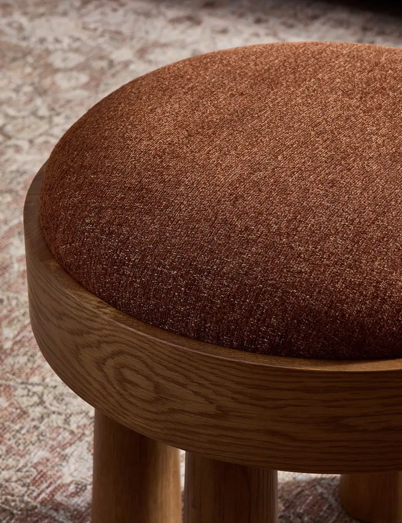 The Armel stool brings the perfect touch of charm to your edit. Its chic silhouette sits on tapered wood legs with a cushioned top for a practical addition that elevates the room. We love this piece styled as a floating accent to cozy up your curation.