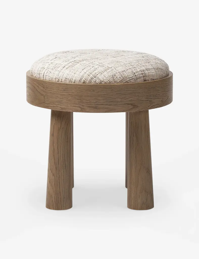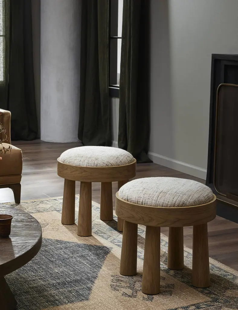 The Armel stool brings the perfect touch of charm to your edit. Its chic silhouette sits on tapered wood legs with a cushioned top for a practical addition that elevates the room. We love this piece styled as a floating accent to cozy up your curation.