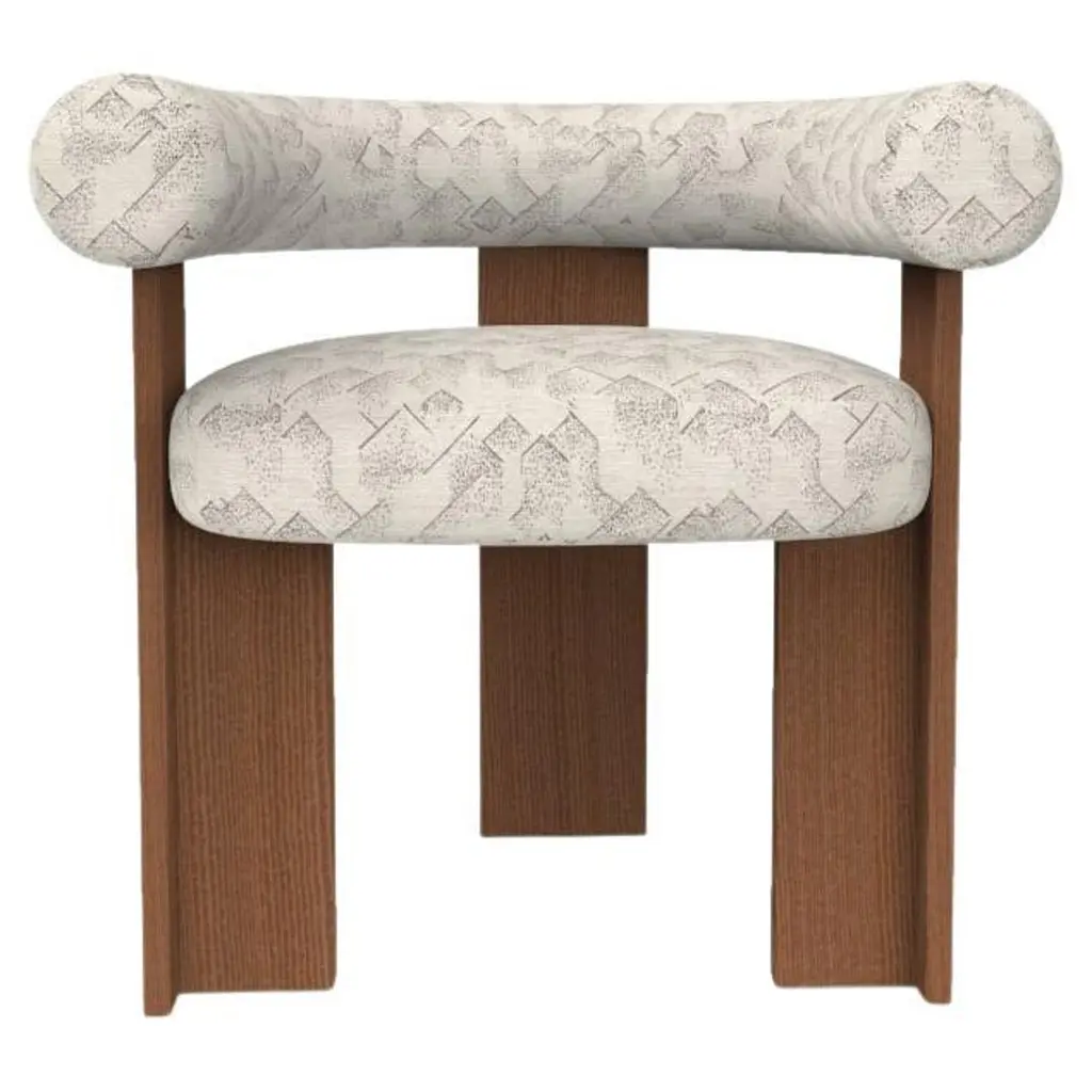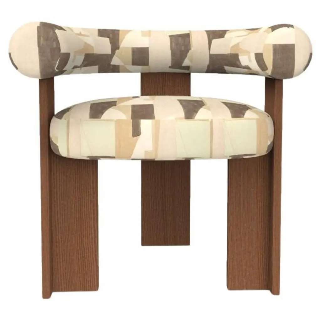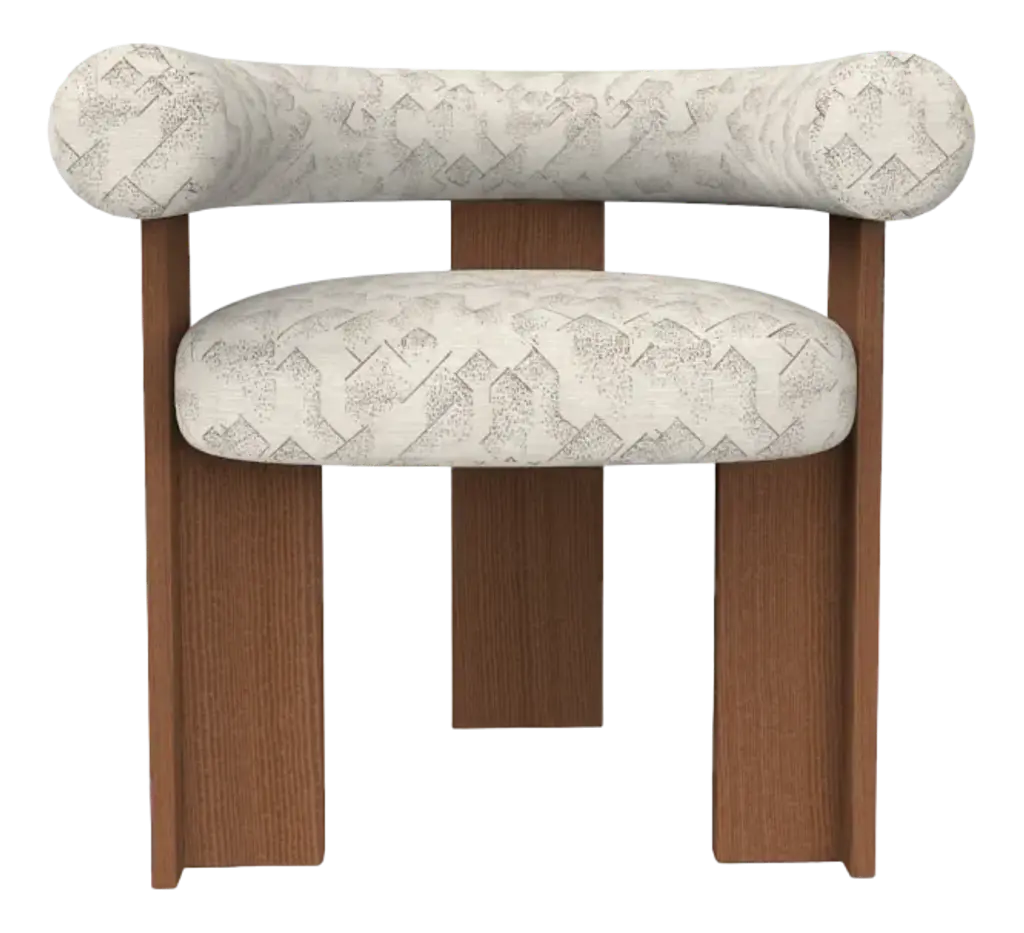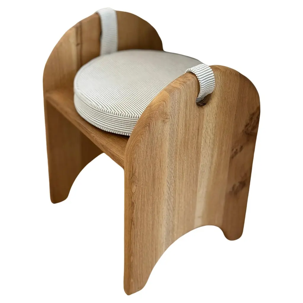 Aro Stool by Gabriela CamposDimensions: D 55 x W 55 x H 62 cm.Materials: Freijó wood with imbuia finish and hand-painted fabric.The essence of this capsule of 4 pieces is a dialog between the Art Décomovement and the indigenous graphics of the Assurini people from theUpper Xingu region of the Amazon. A contemporary look at ancestral tradition, using the geometric aesthetics of the art movement and the application of hand-painted fabric, by Assurini women.Through this union we created a unique visual identity that celebratesour cultural and creative diversity.ESTÚDIO MAIS ALMA moves toward the authentic and the unique, whether in the subtle observation of nature's forms and contours, or in the inexhaustible source of inspiration that is the world of art.Mais Alma is a design studio BASED in Rio de Janeiro, founded by architect and designer Gabriela Campos. Her work has a contemporary and welcoming approach: a comfortable and timeless aesthetic that combines warm materials and clean lines, with soft palettes and finedetails.