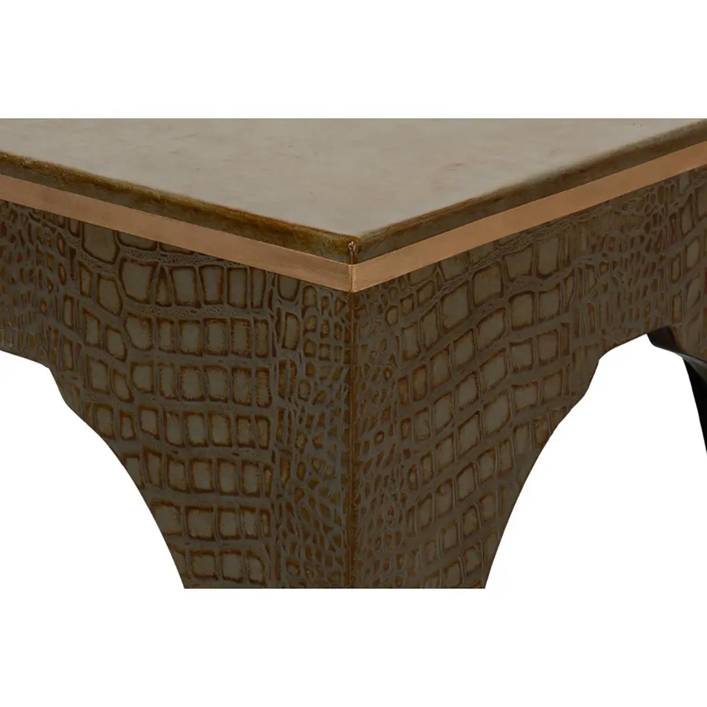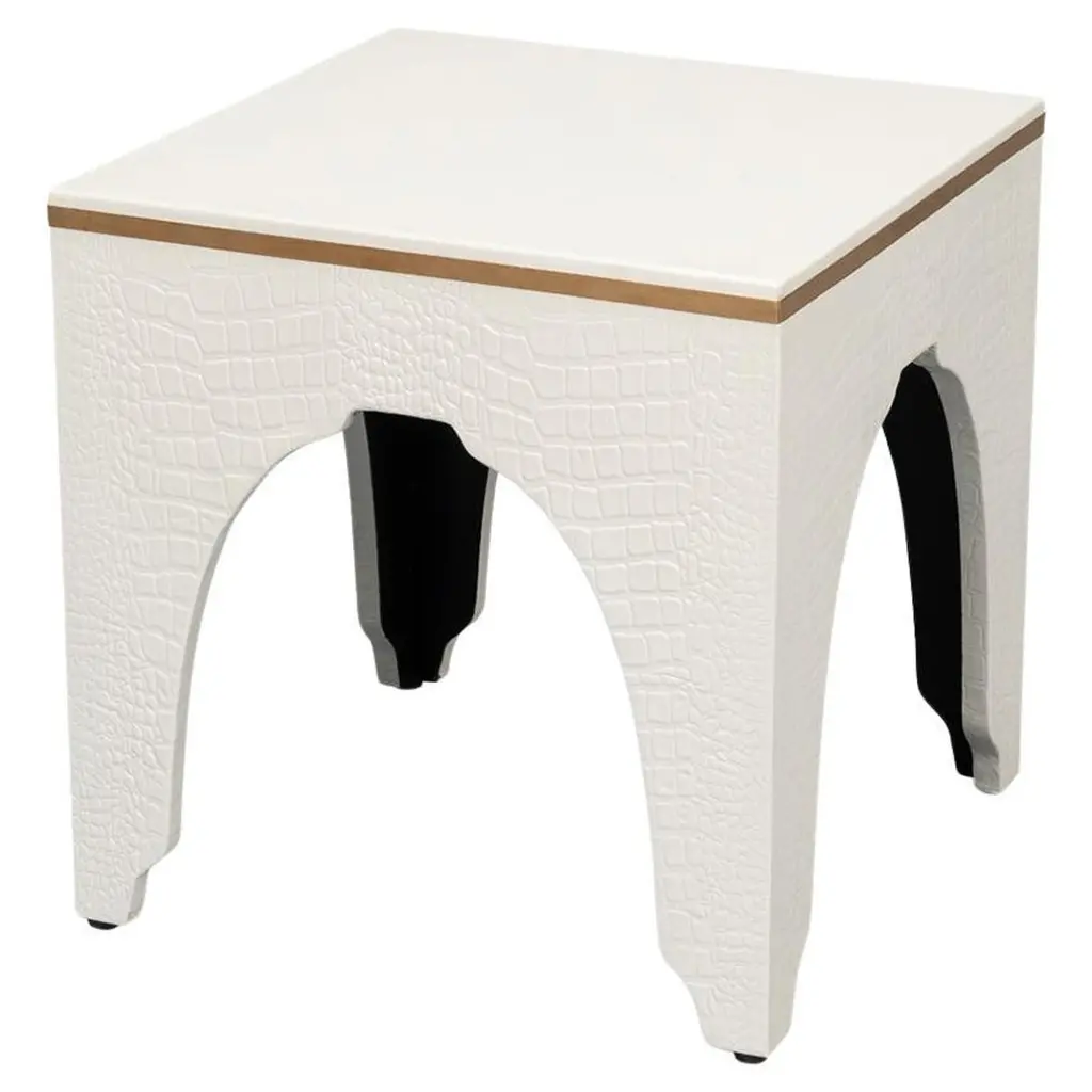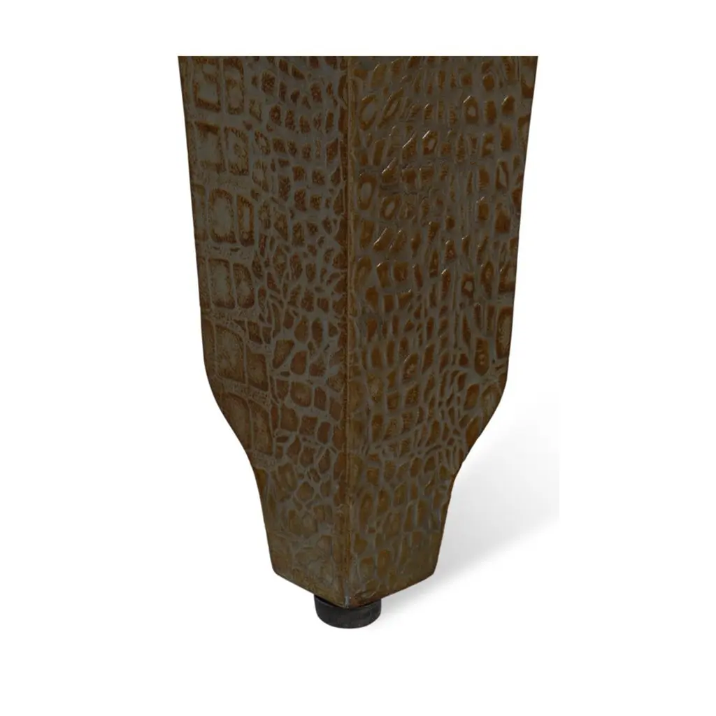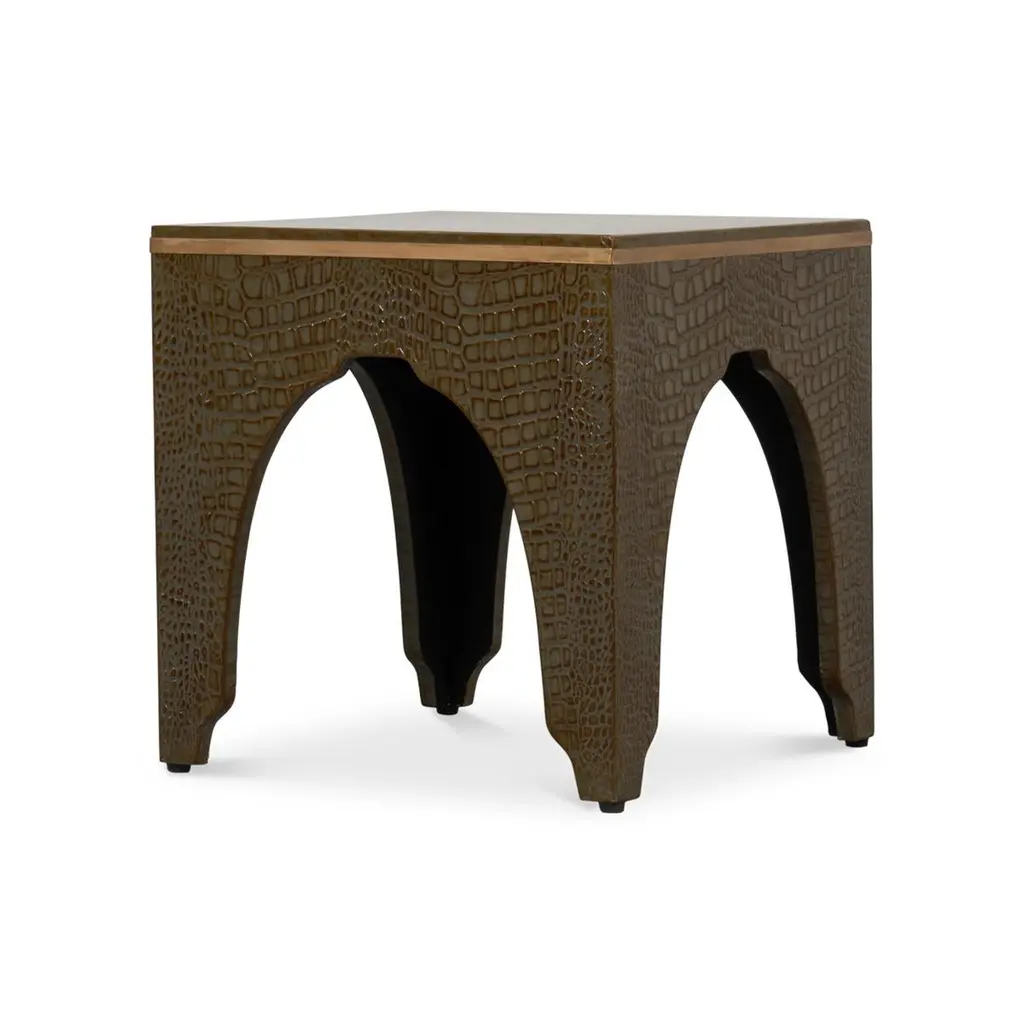 A testament to timeless elegance and luxury. Wrapped in sumptuous leather with a green embossed croc finish, this dark antique green stool exudes a refined charm that elevates any interior space.Its sophisticated design, reflecting the grandeur of the Art Deco style, serves as an eye-catching accent piece, seamlessly blending with various decor themes.Dimensions: 18" W x 18" D x 19.5" H