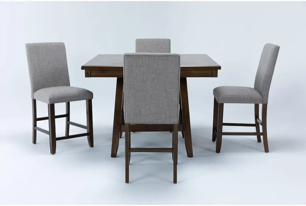 Artemis Marble Counter-Height Dining Table And 4 Upholstered Stools - Gray Marble/brown/natural Legs