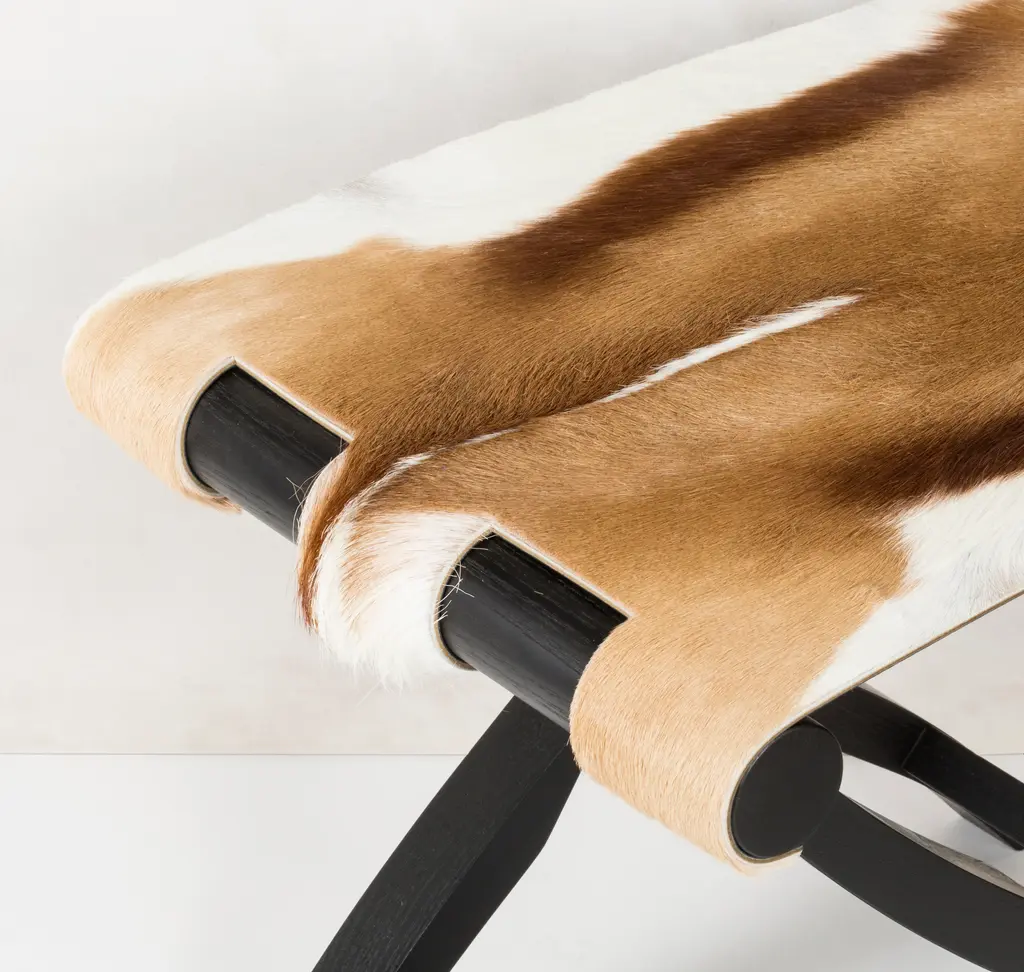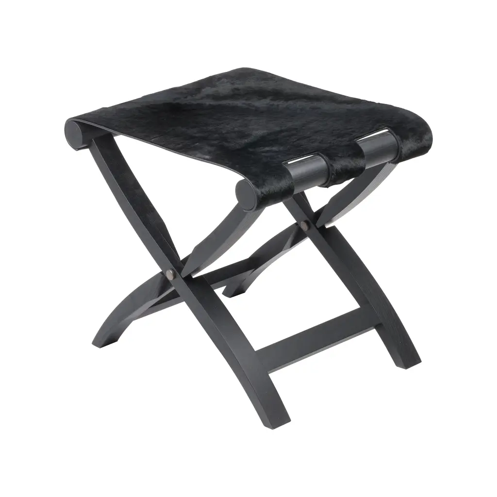 A masterful blend of rustic charm and exotic luxury, the Arturo Folding Stool/Luggage Rack from Giobagnara is a uniquely versatile and tactile design. Expertly handcrafted in Italy, its sturdy oak frame is finished in a rich Wenge stain and detailed with elegant brass joints. The seat is the star, offered in either plush Merino sheepskin or striking Springbok antelope hide, providing unparalleled texture. This transformative piece functions beautifully as an occasional stool or as a gracious luggage rack for a well-appointed guest suite. Highlights: