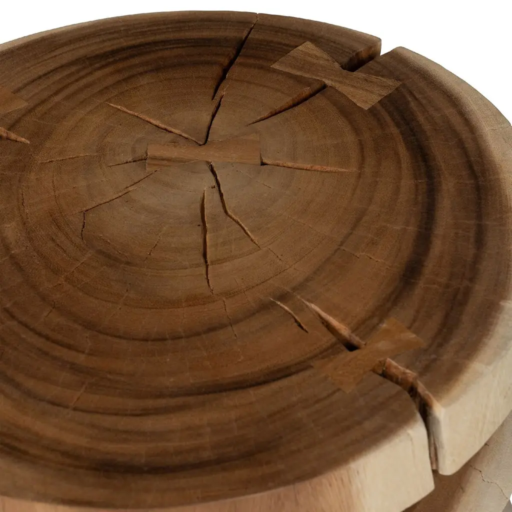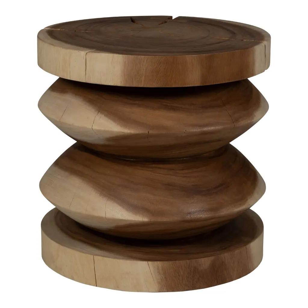 Hand-carved from solid Chamcha wood, the Accent Stool boasts a chess piece-style silhouette that adds a distinctive touch to any living space. Each stool showcases the artisanal expertise evident in the natural wood's beauty, displaying unique grain patterns, knots, and subtle variations in shape and finish. Meticulously crafted by hand, this stool celebrates the inherent authenticity of Chamcha wood, highlighting its organic traits such as knots and cracks. Consequently, every Accent Stool stands as a singular piece, seamlessly blending the raw, natural allure of Chamcha wood with its eye-catching chess piece-style silhouette, bringing a touch of individualistic charm to elevate your decor.