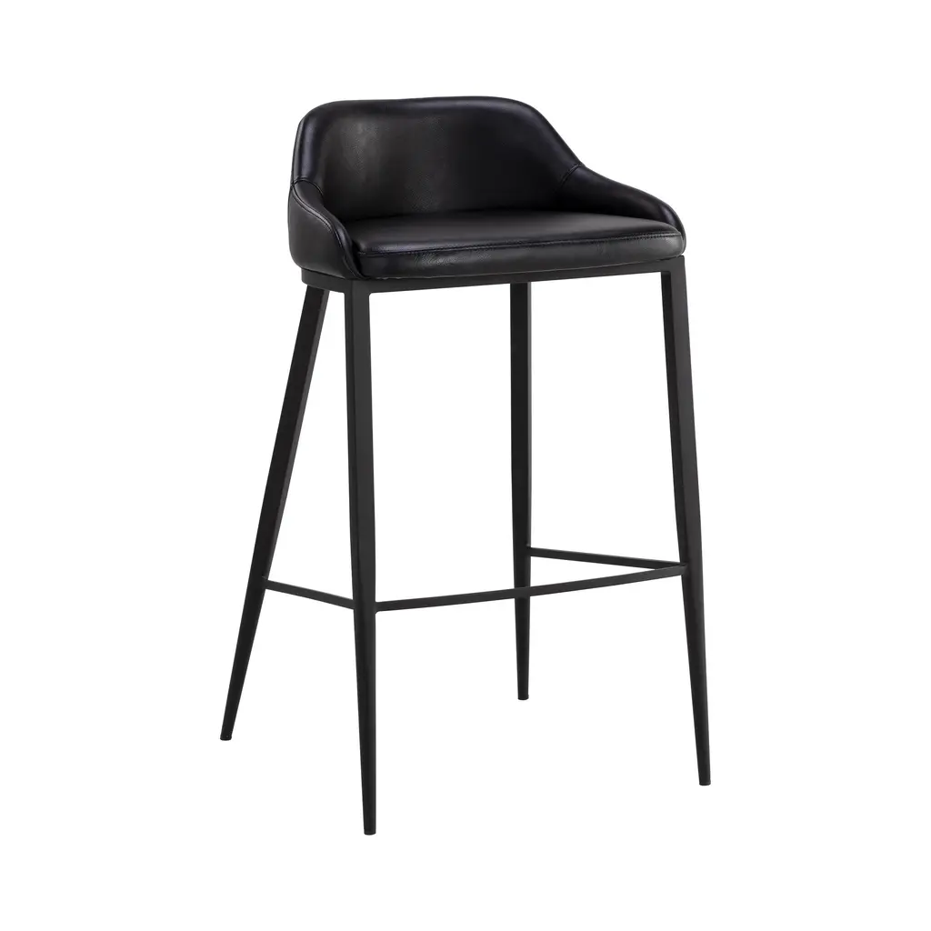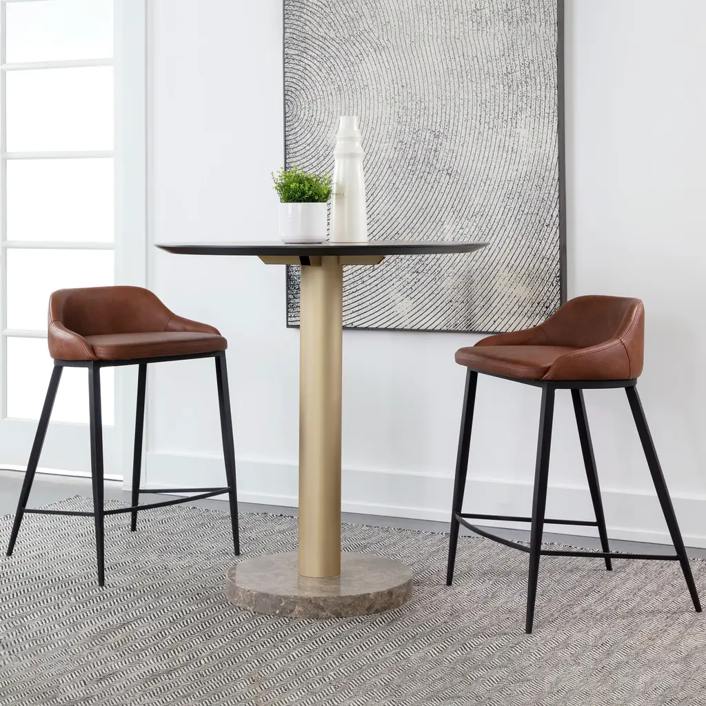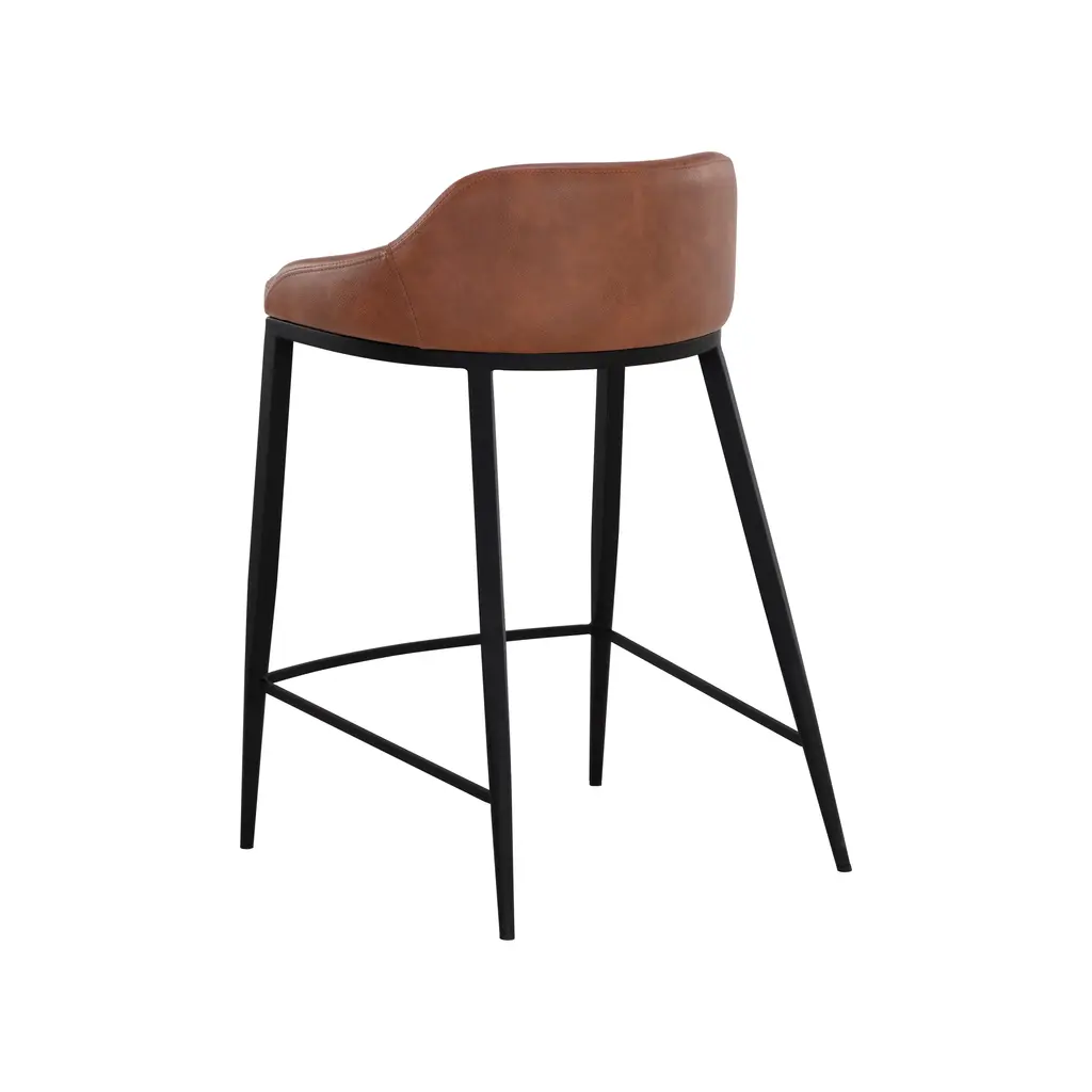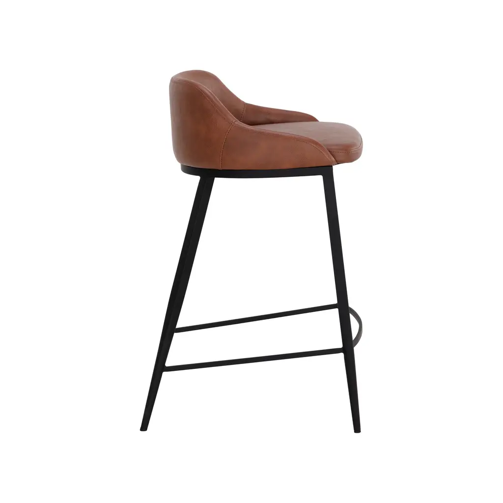 Elevate your kitchen island counter seating experience with the Astra Stool from Sunpan. Its modern silhouette and black powder-coated legs exude sophistication. Wrapped in cinnamon brown faux leather, the low back seat offers both style and comfort for hours of enjoyment. Each stool is unique with its own natural characteristics, a testament to its quality craftsmanship. Highlights