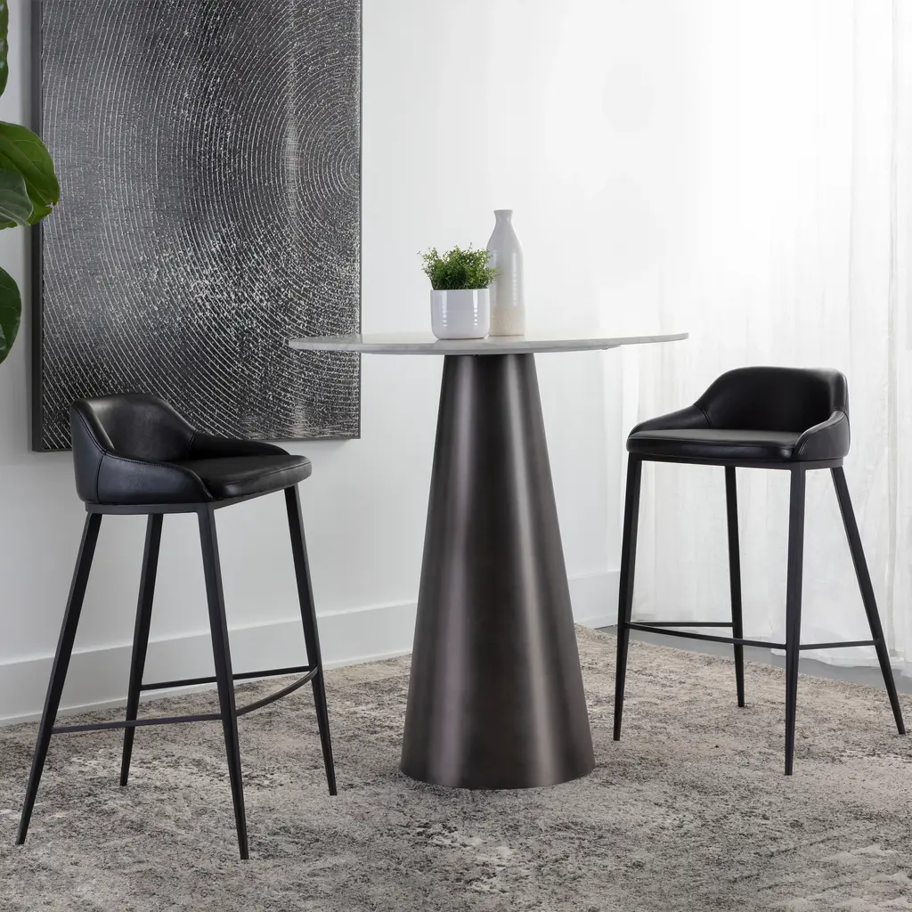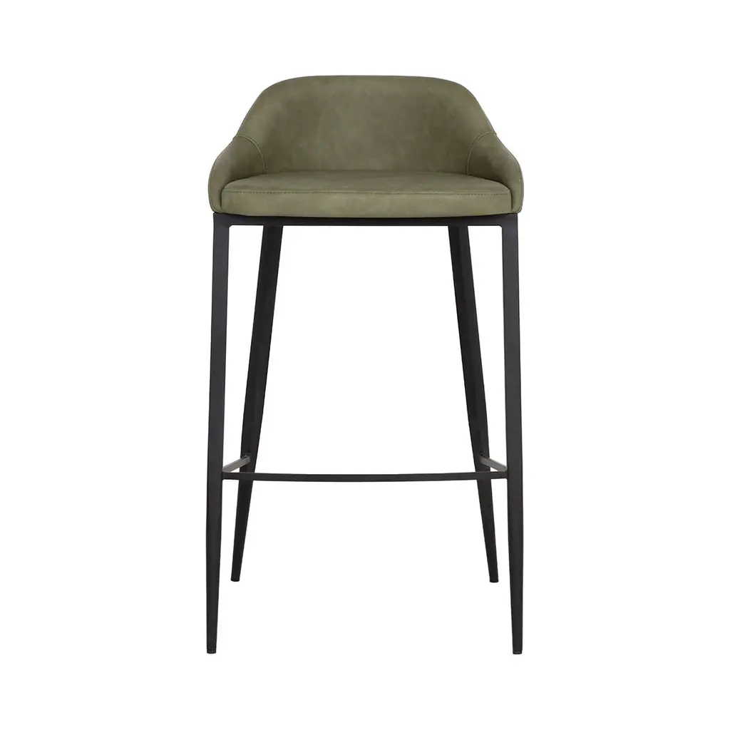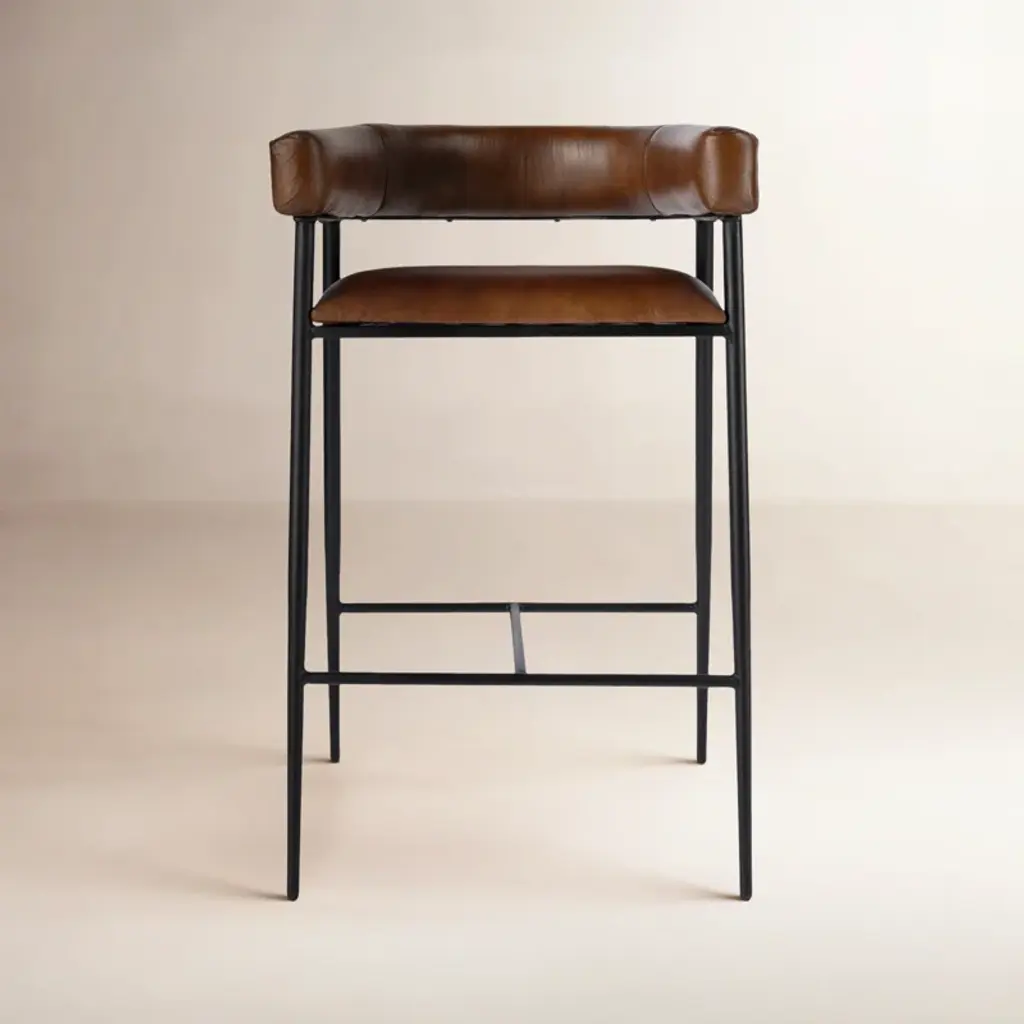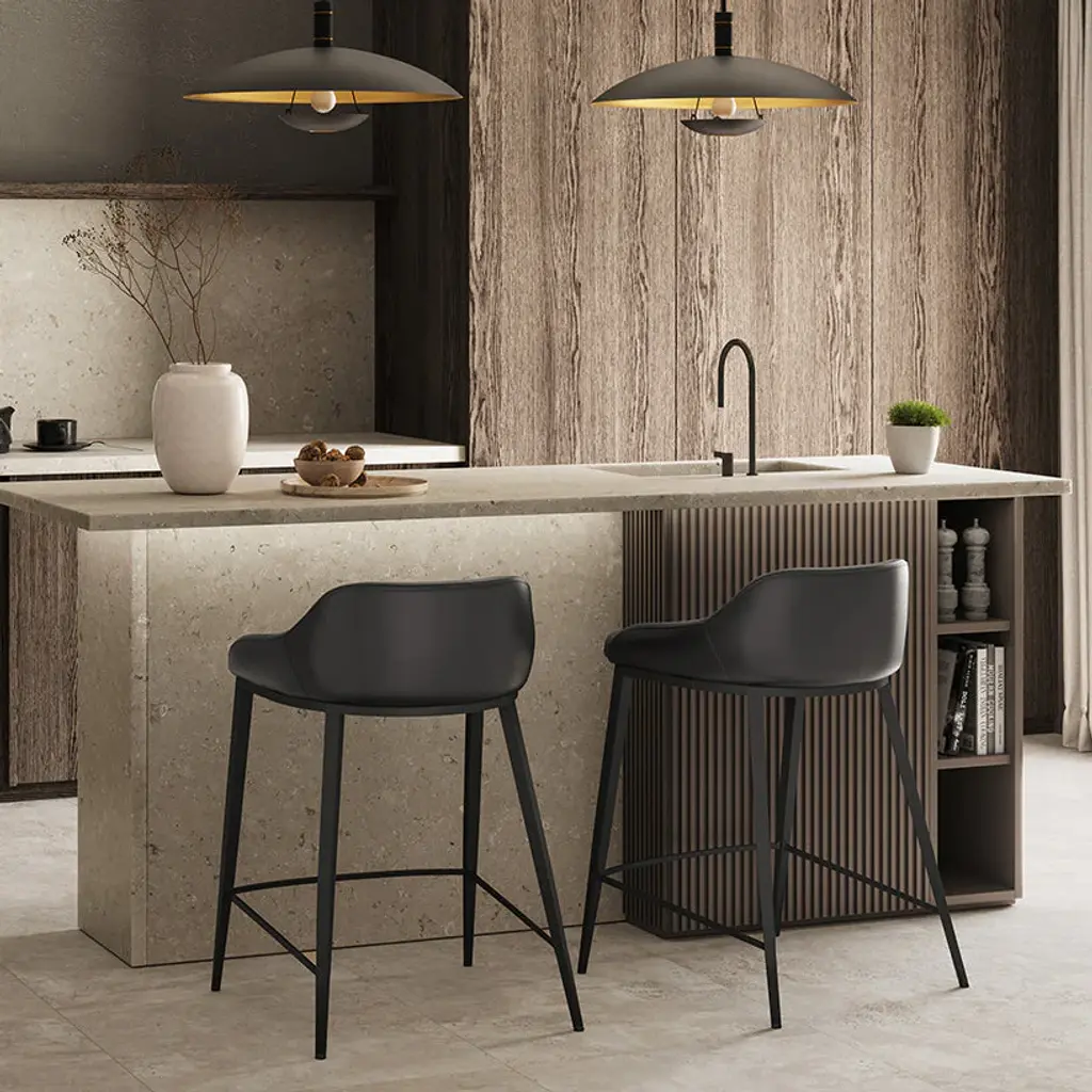 Elevate your kitchen island counter seating experience with the Astra Stool from Sunpan. Its modern silhouette and black powder-coated legs exude sophistication. Wrapped in cinnamon brown faux leather, the low back seat offers both style and comfort for hours of enjoyment. Each stool is unique with its own natural characteristics, a testament to its quality craftsmanship. Highlights