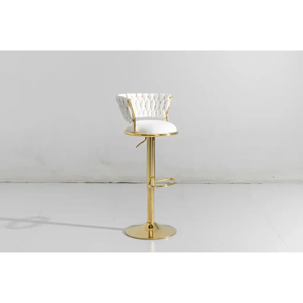 Bringing a minimalistic style with a glam twist to your kitchen space, meet the Astro Stool. The plush foam seating is upholstered in comfortable vegan leather, all accented by a gold band and sturdy stainless steel base. This stool is the perfect addition to a contemporary home while adding a subtle dazzle! Available in black, white, and malachite green.