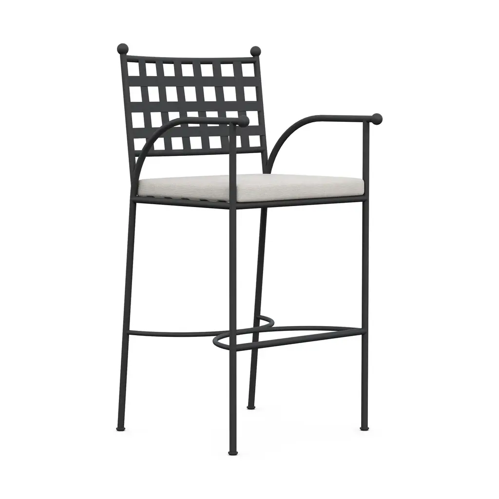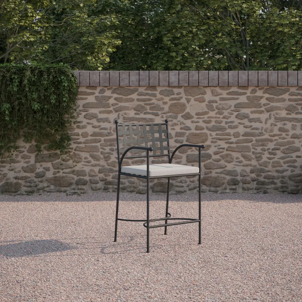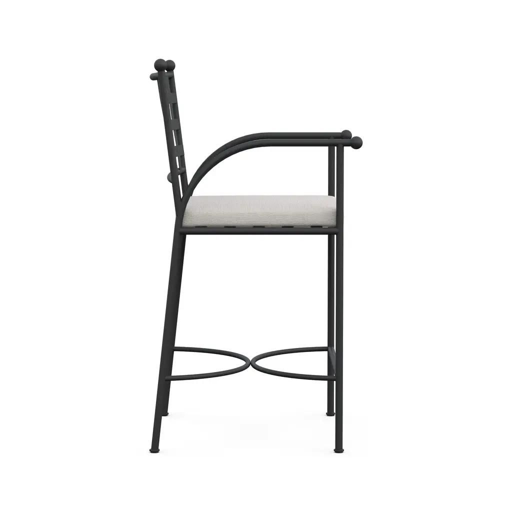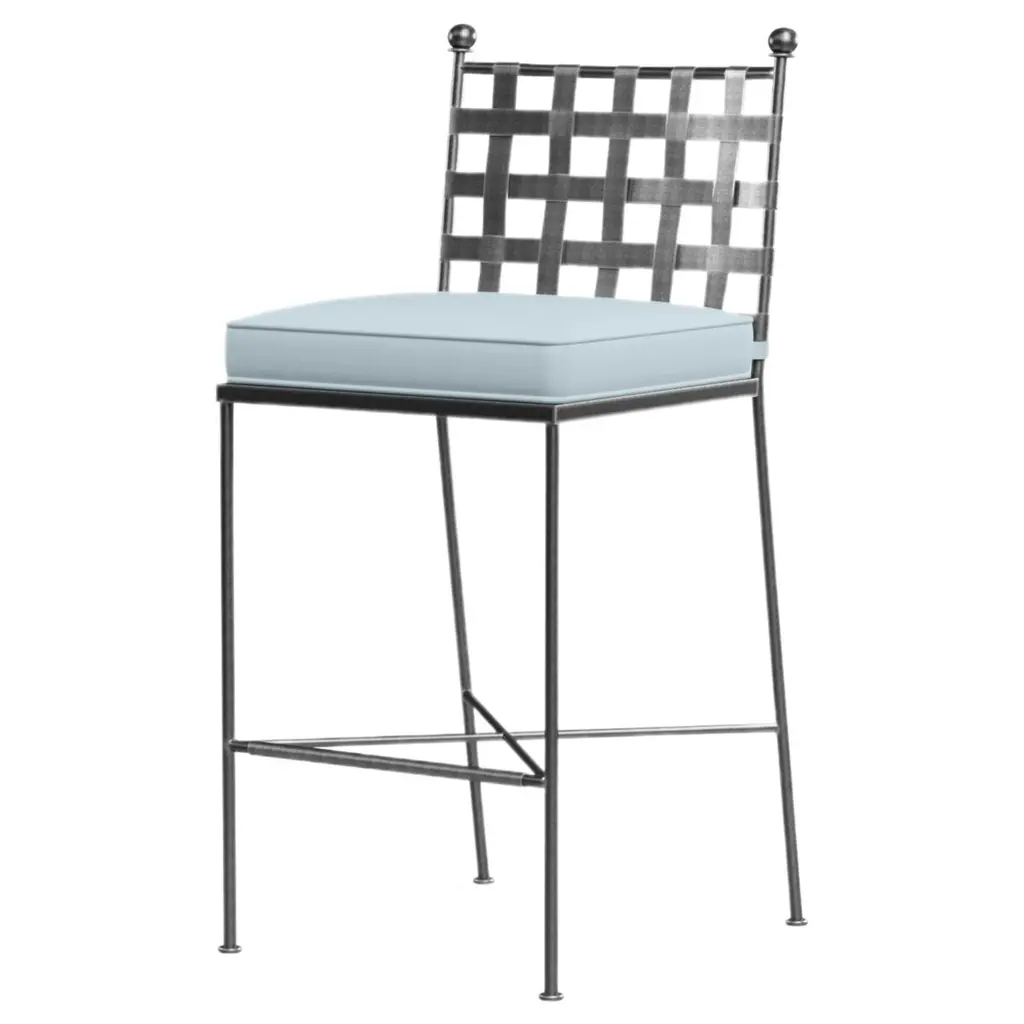 The Athens Stool from Azzurro Living blends European-inspired elegance with timeless design. Featuring sculpted wrought iron accents and refined finials, this stool offers exceptional comfort with its soft, durable performance fabric. Expertly crafted with intricate detailing, it embodies a sophisticated cottage chic aesthetic that seamlessly balances classic charm and modern simplicity. Highlights