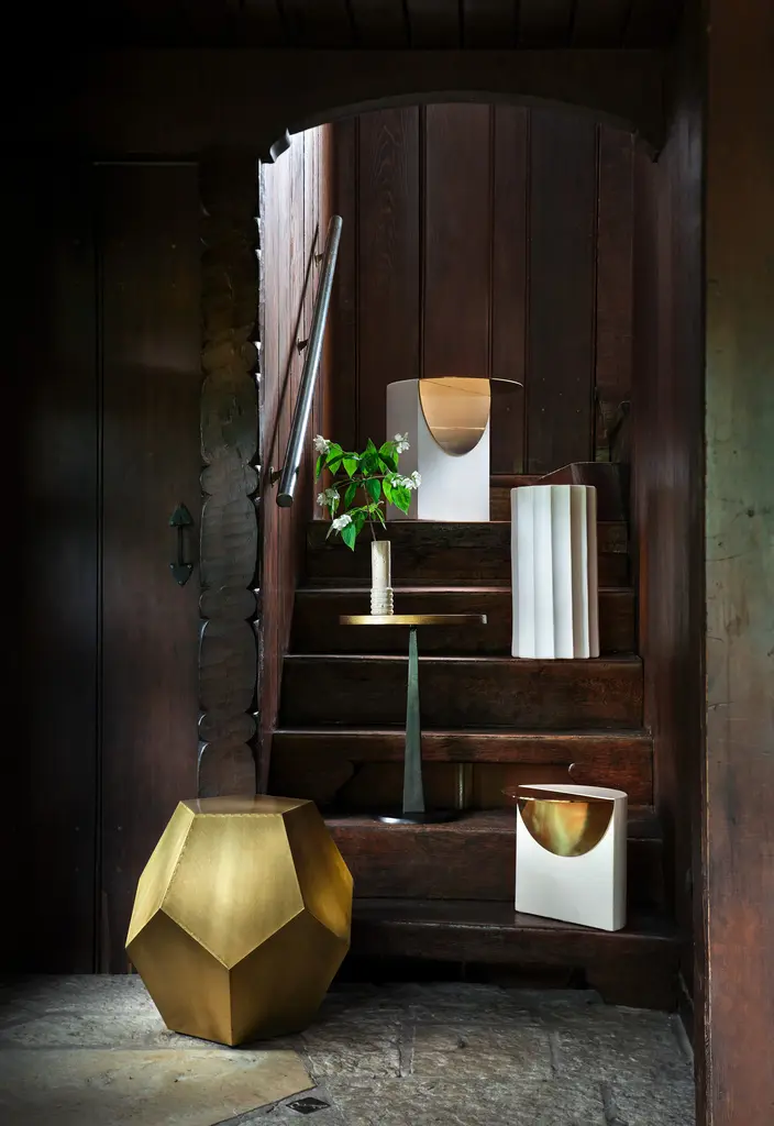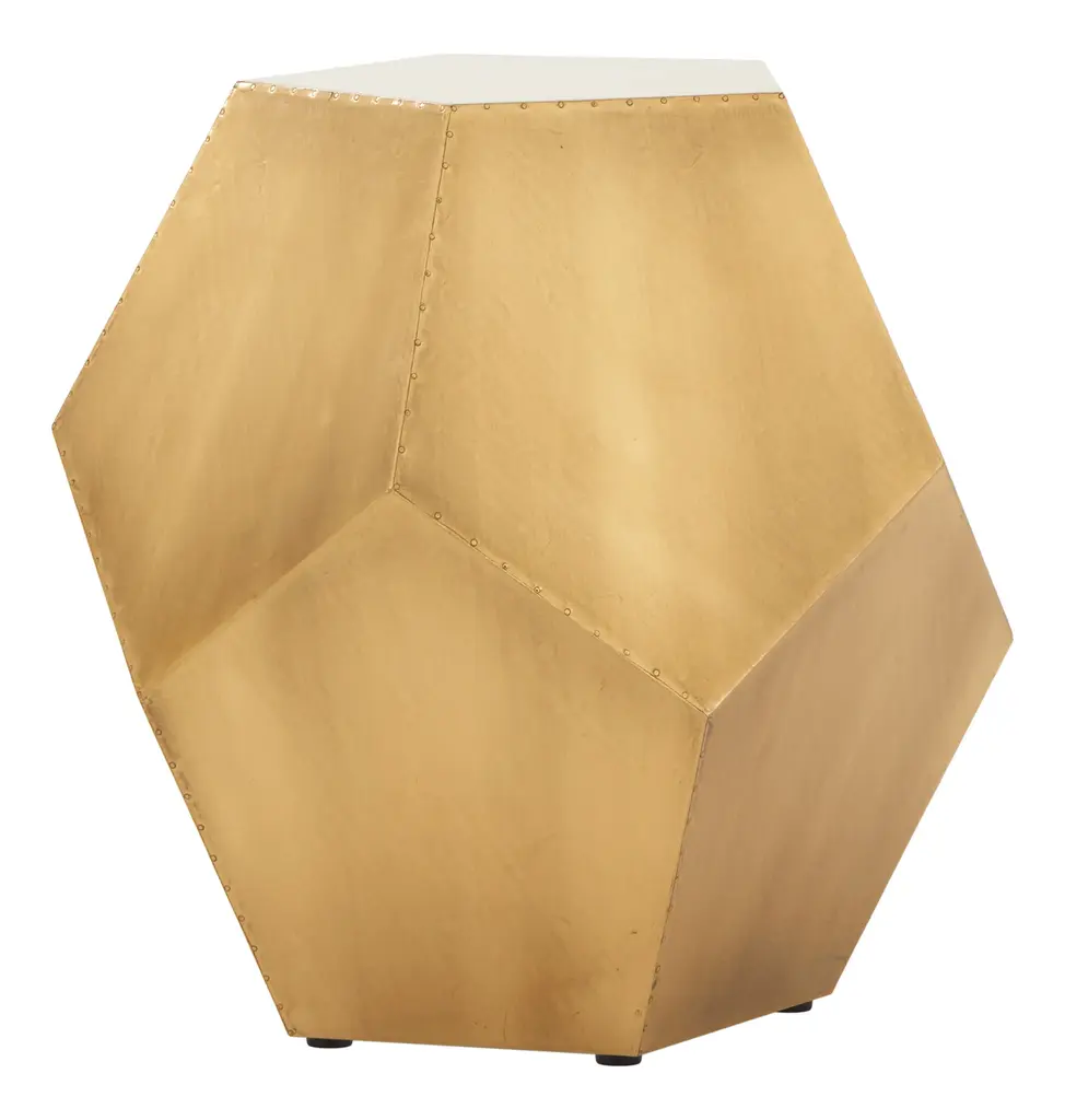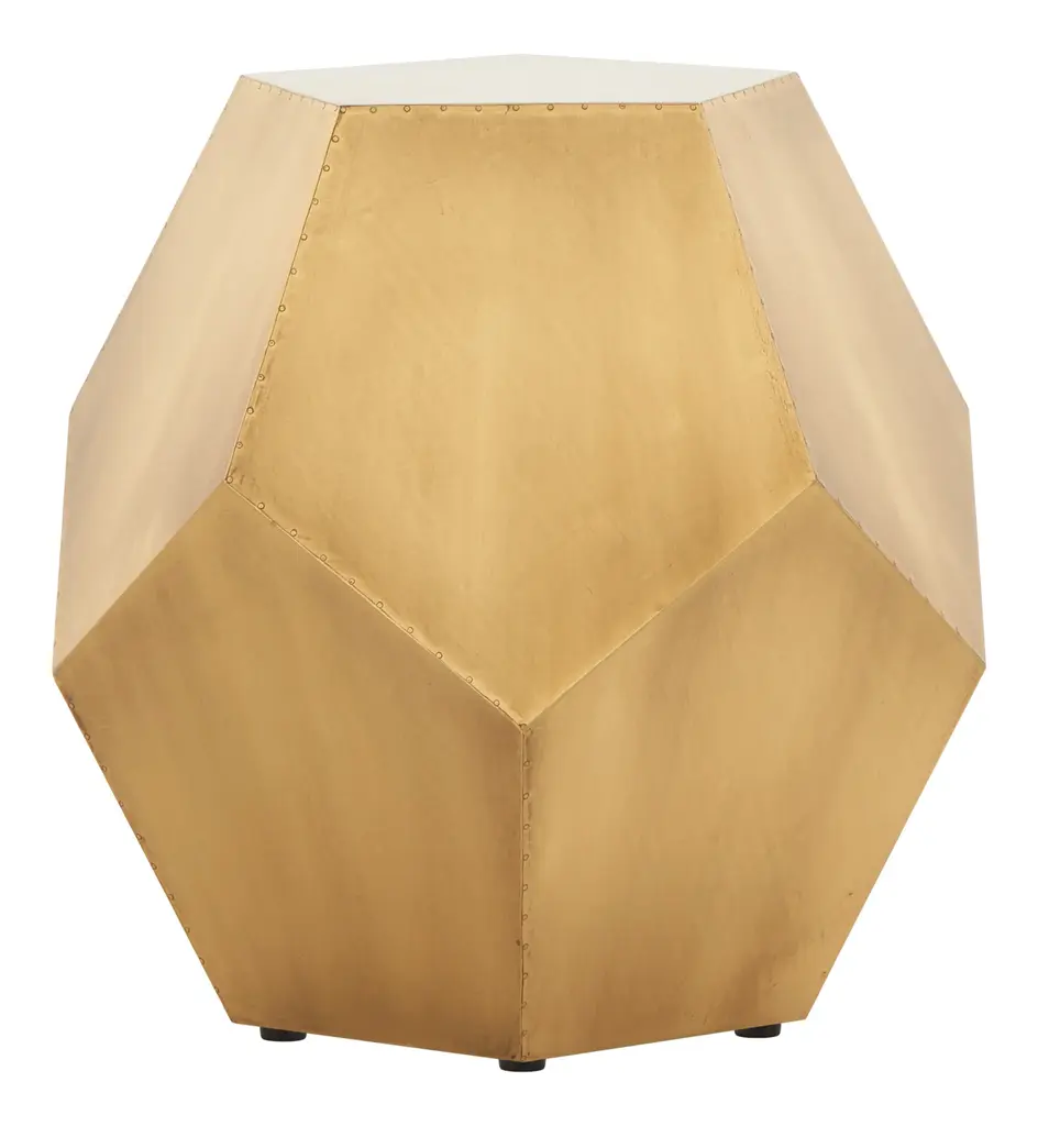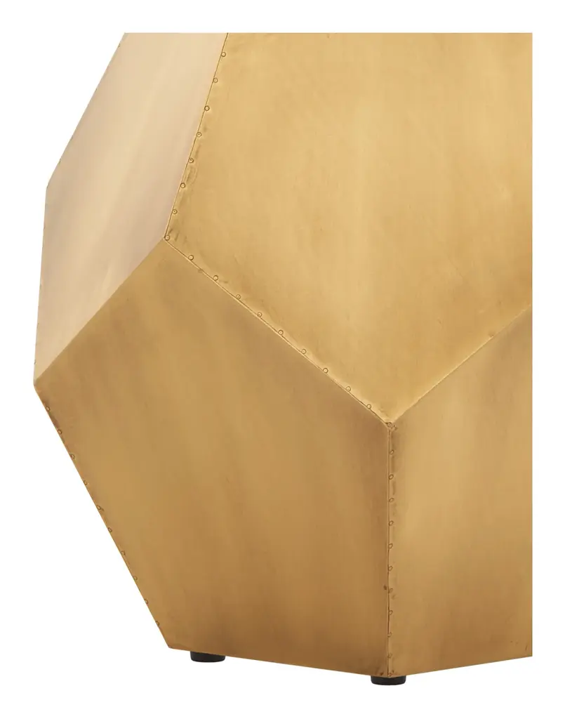 Give your space a pop of dimension with our chic little Atmos Stool. Looking good from every angle, this piece is crafted from sturdy fiberboard into a blocky, geometric shape, covered with brass foil sheets for a bit of muted shine and finished with tiny tack details along its many edges. An instant classic in any modern home, our versatile Atmos Stool is great to have around when the need for extra seating arises — although we also love it nestled between a pair of armchairs for a unique side table. •fiberboard •brass foil finish•tack details Dimensions•19.75" diameter x 19"H •tabletop: 11.5" diameter