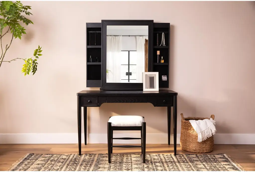 Introducing the Austen Black 18" High Square Upholstered Seat & Wood Stool, perfect for adding a touch of traditional style to your living room. This stool features a square orientation and is designed with tapered legs, making it a versatile addition to any space. The armless design ensures comfort and ease of use.