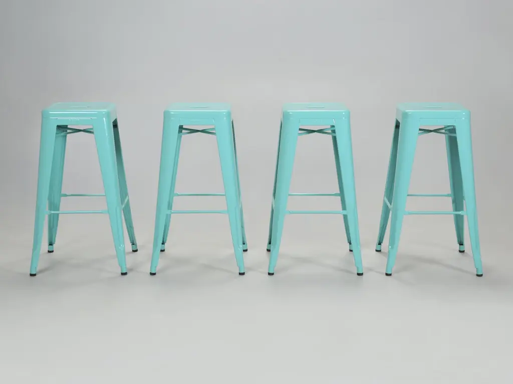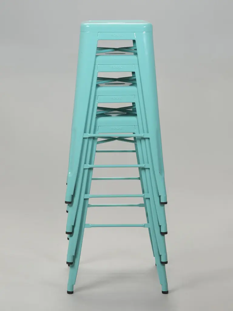 Authentic French Tolix Cyan Blue Stacking Steel Bar Height 30" Stools (Set Of 4)
