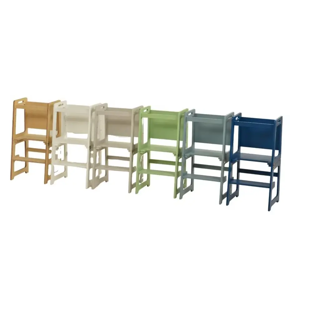 Avenlur's Kitchen Tower was thoughtfully designed with the guiding principles of hands-on learning in mind. The Learning Kitchen brings children safely to counter height to encourage exploration, independence, and interaction with parents. Its compact profile includes a folding step that makes it a perfect fit under kitchen counters and islands, while its adjustable design grows with your child helping them reach counter height.