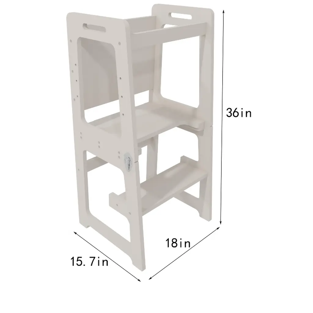 Avenlur's Kitchen Tower was thoughtfully designed with the guiding principles of hands-on learning in mind. The Learning Kitchen brings children safely to counter height to encourage exploration, independence, and interaction with parents. Its compact profile includes a folding step that makes it a perfect fit under kitchen counters and islands, while its adjustable design grows with your child helping them reach counter height.