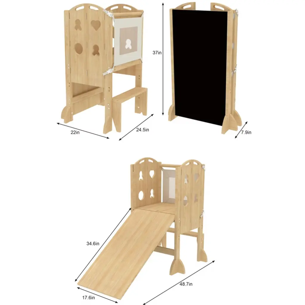 Avenlur Laurel - 4 In 1 Foldable Kitchen Tower, Step Stool, Chalkboard And Slide