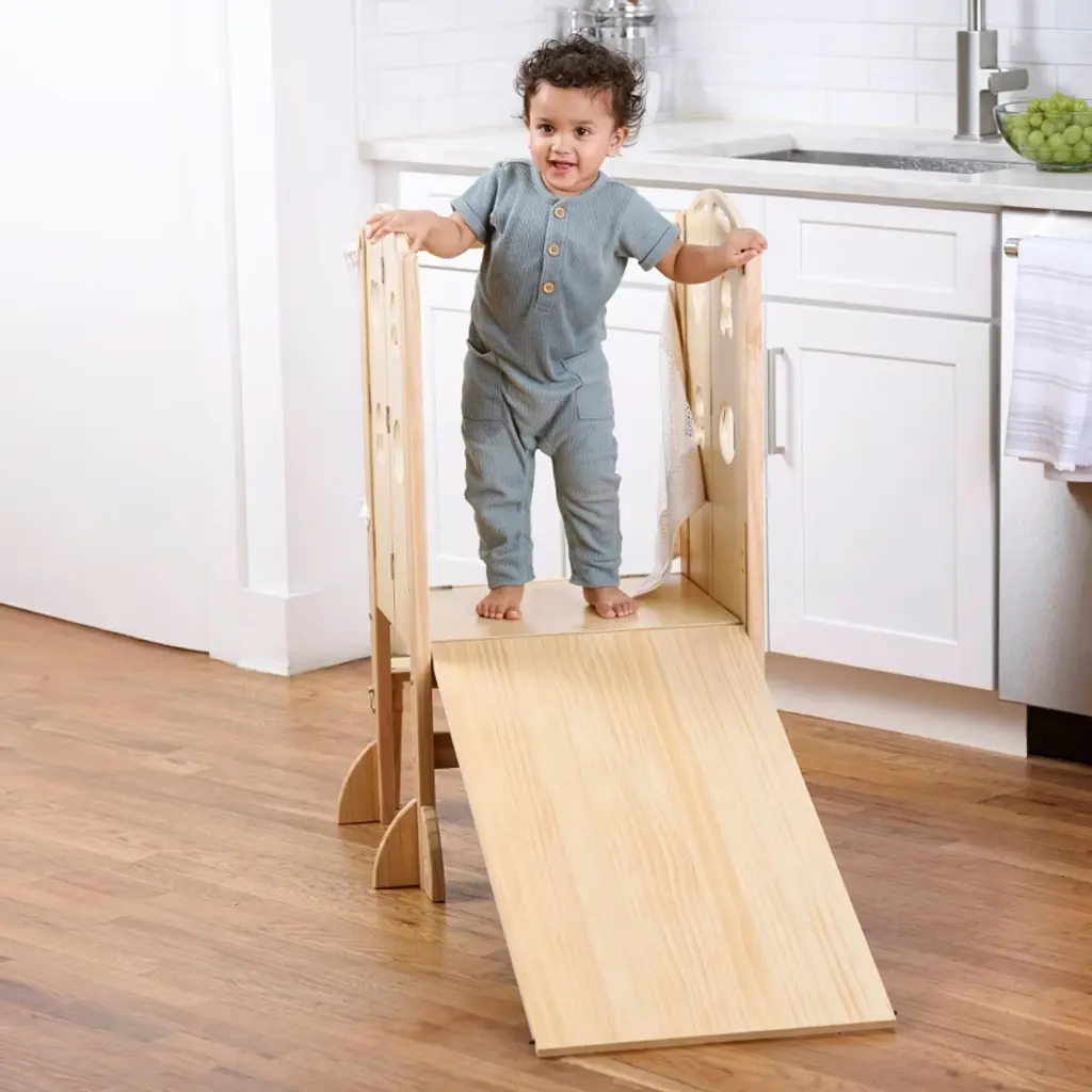 Introduce a delightful blend of safety, functionality, and creativity to your family kitchen with the Children's Avenlur Laurel Foldable Kitchen Tower featuring an engaging chalkboard and a pull-out slide. This specially designed kitchen tower allows children to actively participate in kitchen activities while adding an element of fun and personal expression. Transform cooking into a family adventure with the Children's Avenlur Laurel Foldable Kitchen Tower with a Chalkboard and slide – a safe, vibrant, and creatively inspiring tool for the young chefs in your home.