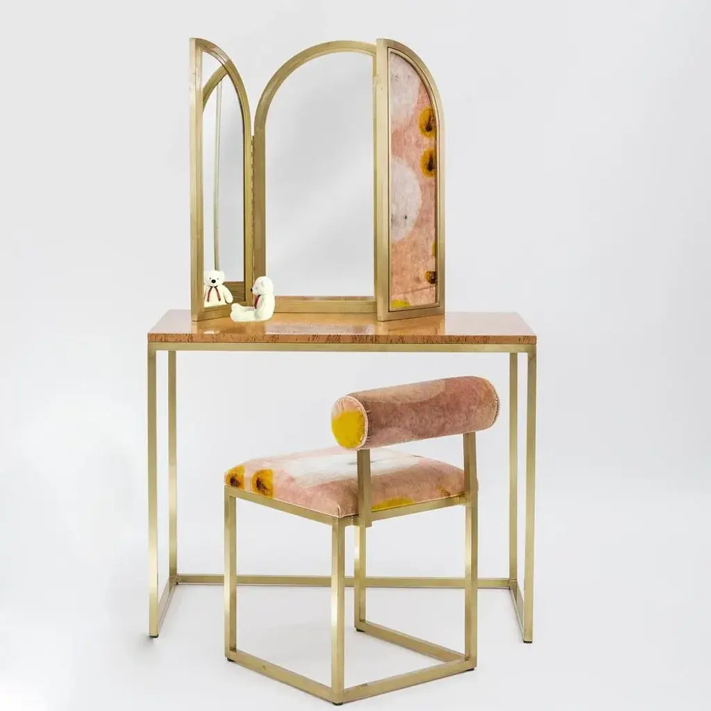 Set of 2 awaiting vanity table and t stool by secondome edizioni limited edition of 9 pieces + 3 a.p. Designer: coralla maiuri + giorgia zanellato. Dimensions: vanity table: d 50 x w 90 x h 140 cm. T stool: d 40 x w 49 x h 67 cm. Materials: original printed velvet, briar root wood, mirror and brass. Collection / production: secondome. This piece can be customized. Available colors: any kind of velvet color. Please contact us. The project’s name speaks to the feeling of anticipation and excitement that precedes an encounter and it’s deeply linked to the purpose of the objects: benches, stools, a mirror, a vanity table and a room divider. The collaboration started as a game. The artist, coralla maiuri, inspired by the pictures of her porcelain pieces, designs a collection of bold colored velvet cloth. Her will to shape them in to something equally bold yet refined, brings her, trough claudia pignatale, together with the designer giorgia zanellato. Awaiting is a feminine and sensual collection that mixes a taste of classic and contemporary in pieces of furniture realized in golden brass, glass and velvet. The gallery secondome is a design gallery focused on contemporary designers and innovative projects worldwide. Founded by claudia pignatale in 2006, secondome produces its own collection of furniture and objects working to launch experimental designers, artisans and master craftsmen. Its mission lies in highlighting both the high quality manufacture of the made in italy brand and the originality of products, emphasizing the tradition of italian craftsmanship whilst breaking the mold of lifeless objets d’art. The artisanal nature of secondome’s production makes each piece individual and highly personalized.