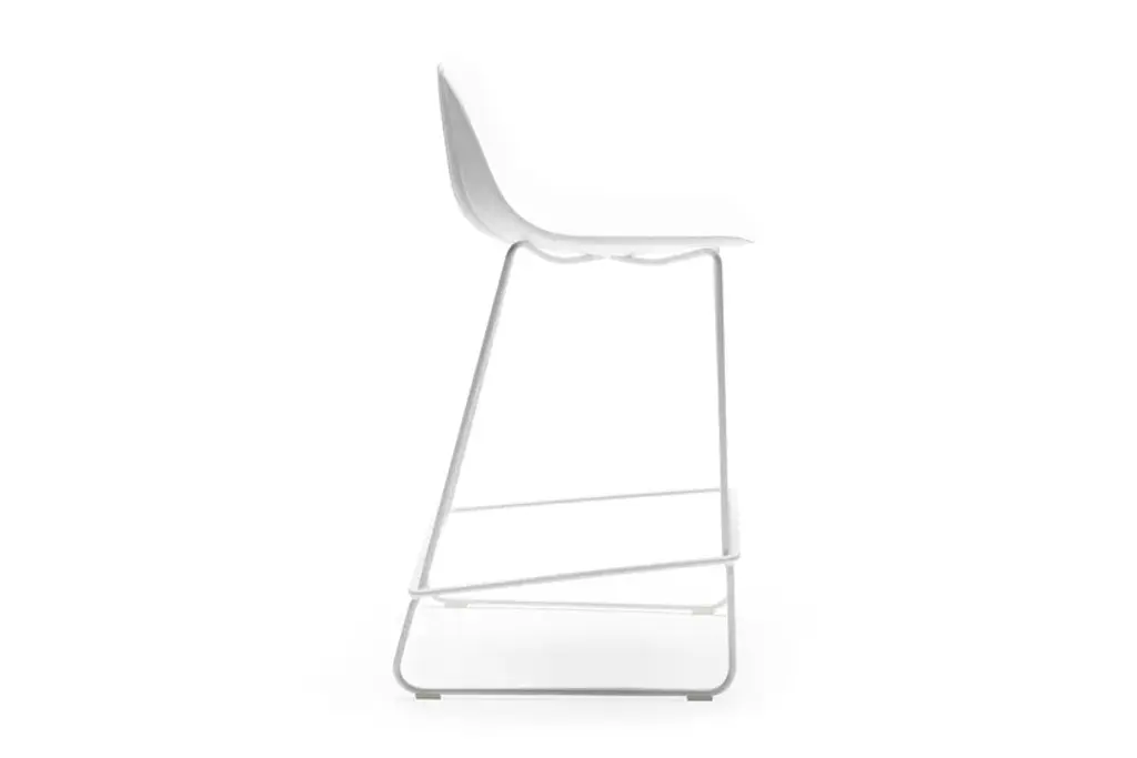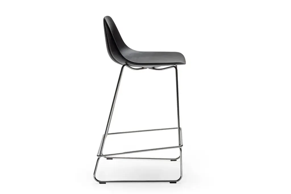 Babah (design Roberto Paoli) is an eye-catching, elegant seat full of personality. It features composure of lines, proportions and tones that make it both classic and innovative. Its essential figure is softened by the decoration of the backrest, which gives it a slightly retro touch and a timeless aesthetic. Thanks to these characteristics, Babah fits harmoniously into environments that are heterogeneous in terms of style and intended use.Babah is attractive, elegant and full of personality. Babah is a collection of chairs characterized by proportions and lines that make it both classic and contemporary. This chair can be placed in multiple environments, with a diversity of style and purpose. With its slightly ‘retro’ look, Babah is a timeless essential. The design is softened by the styling of the back, characterized by vertical lines that look like seams of soft padding but are the result of rigid polyurethane molding, which is flame retardant, easy to clean, durable and lightweight. Babah collection is available in 3 different variants: Babah S with 4 metal legs (easy to stack), Babah SL with sled base and Babah W with beech wood legs and metal frame. For each type of base, stools are also available, both counter height and bar height (65-80 cms).