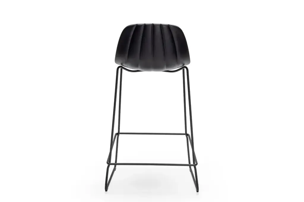 Babah (design Roberto Paoli) is an eye-catching, elegant seat full of personality. It features composure of lines, proportions and tones that make it both classic and innovative. Its essential figure is softened by the decoration of the backrest, which gives it a slightly retro touch and a timeless aesthetic. Thanks to these characteristics, Babah fits harmoniously into environments that are heterogeneous in terms of style and intended use.Babah is attractive, elegant and full of personality. Babah is a collection of chairs characterized by proportions and lines that make it both classic and contemporary. This chair can be placed in multiple environments, with a diversity of style and purpose. With its slightly ‘retro’ look, Babah is a timeless essential. The design is softened by the styling of the back, characterized by vertical lines that look like seams of soft padding but are the result of rigid polyurethane molding, which is flame retardant, easy to clean, durable and lightweight. Babah collection is available in 3 different variants: Babah S with 4 metal legs (easy to stack), Babah SL with sled base and Babah W with beech wood legs and metal frame. For each type of base, stools are also available, both counter height and bar height (65-80 cms).
