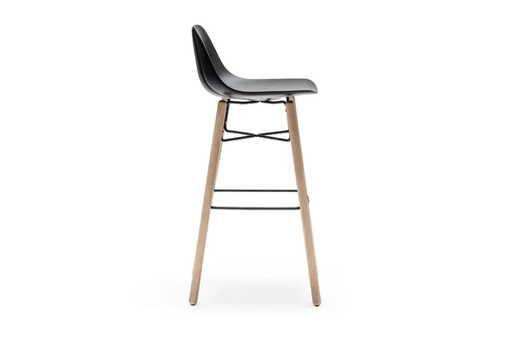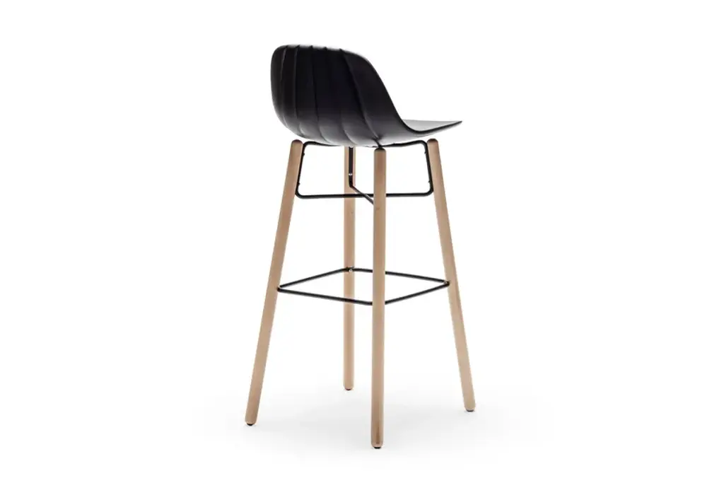 Babah (design Roberto Paoli) is an eye-catching, elegant seat full of personality. It features composure of lines, proportions and tones that make it both classic and innovative. Its essential figure is softened by the decoration of the backrest, which gives it a slightly retro touch and a timeless aesthetic. Thanks to these characteristics, Babah fits harmoniously into environments that are heterogeneous in terms of style and intended use.Babah is attractive, elegant and full of personality. Babah is a collection of chairs characterized by proportions and lines that make it both classic and contemporary. This chair can be placed in multiple environments, with a diversity of style and purpose. With its slightly ‘retro’ look, Babah is a timeless essential. The design is softened by the styling of the back, characterized by vertical lines that look like seams of soft padding but are the result of rigid polyurethane molding, which is flame retardant, easy to clean, durable and lightweight. Babah collection is available in 3 different variants: Babah S with 4 metal legs (easy to stack), Babah SL with sled base and Babah W with beech wood legs and metal frame. For each type of base, stools are also available, both counter height and bar height (65-80 cms).