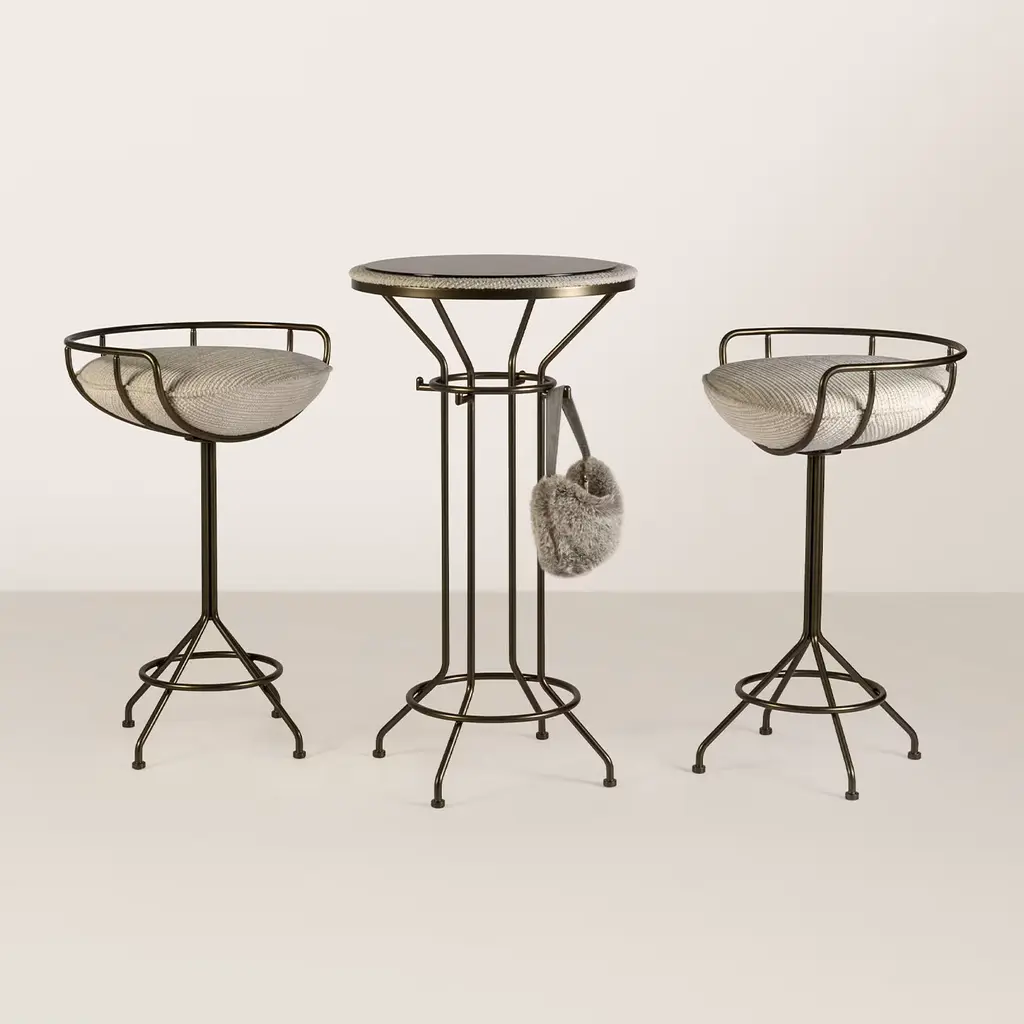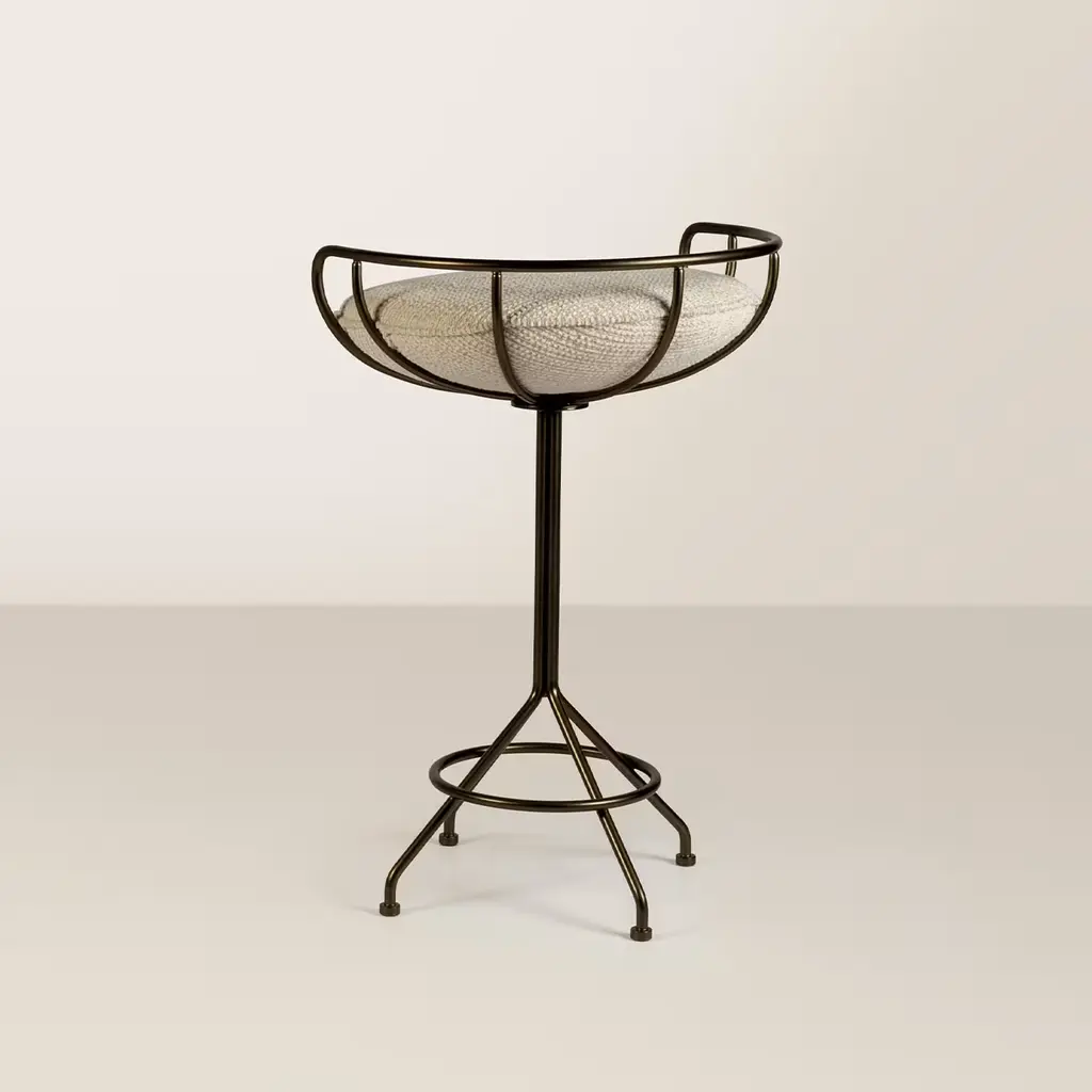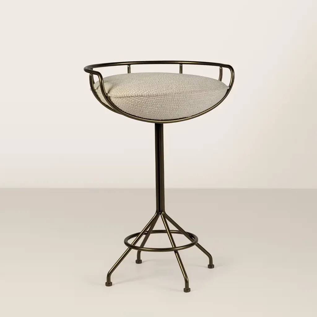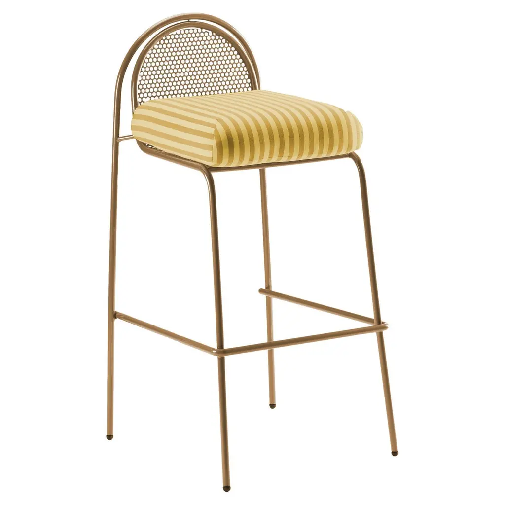 A clean and sophisticated stool from the Back to Bronze Collection, this piece boasts an ergonomic and elegant design of timeless value. It features a sturdy, linear structure made of steel, finished with bronze powder paint, and a welcoming, softly padded, and fabric-upholstered seat cushion. Please consult the Concierge for further details.