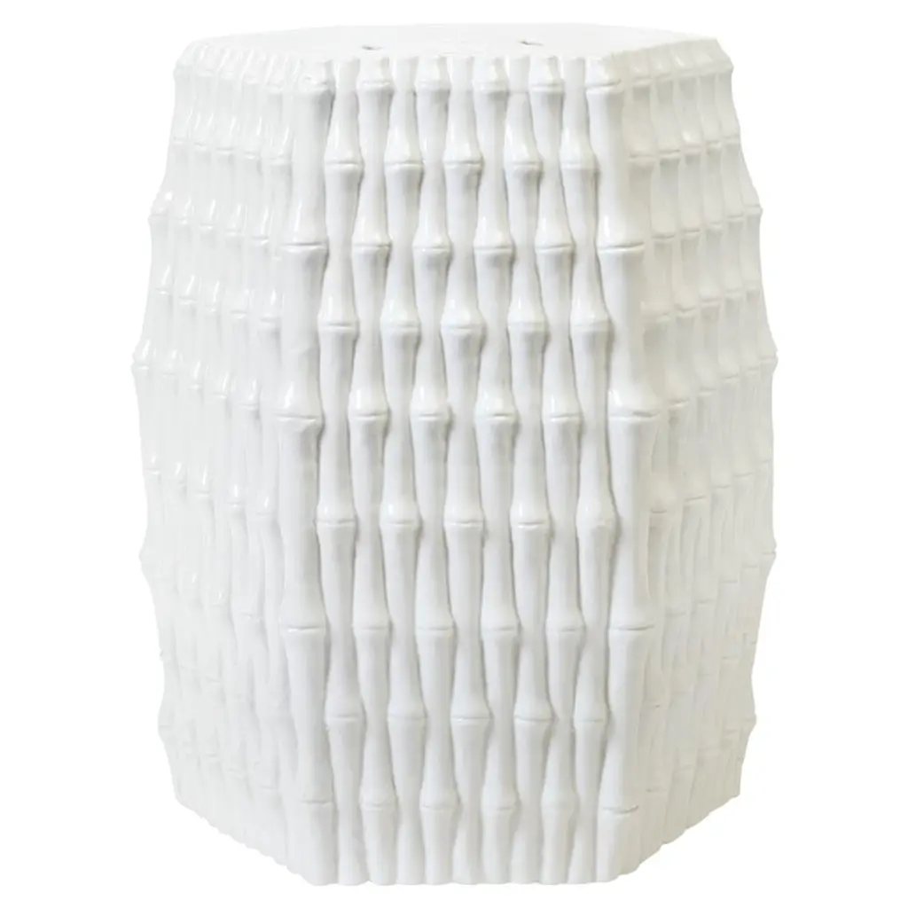 Grand and ever so casual with carved bamboo, our Bamboo Garden porcelain stools collection is versatile and stylish. Display the garden stool on the porch for extra seating or as a small accent table. Inside, place it next to your favorite chair for a pop of color and texture in the living room. It's also perfect in the bath as a perch for your towel or phone near the tub. Measurements: 20"H x 15" diameter. Materials: porcelain.