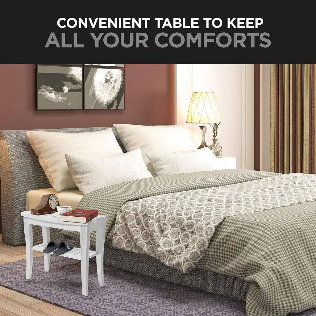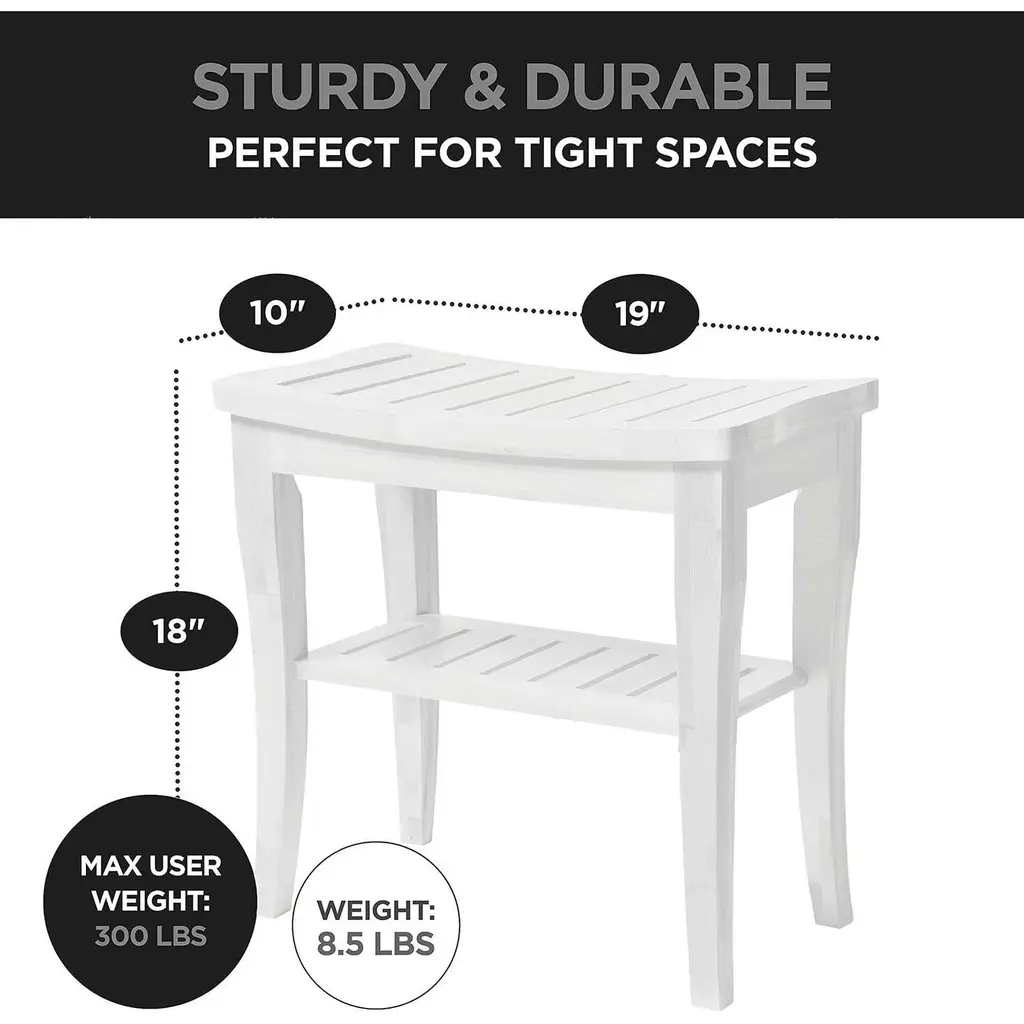 Bamboo Shower Bench Spa Stool - Wood 2-Tier Seat, Foot Rest Shaving Stool With Non-Slip Feet + Storage Shelf - Seat Or Organizer - White