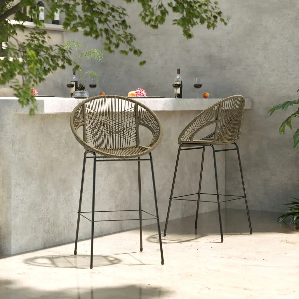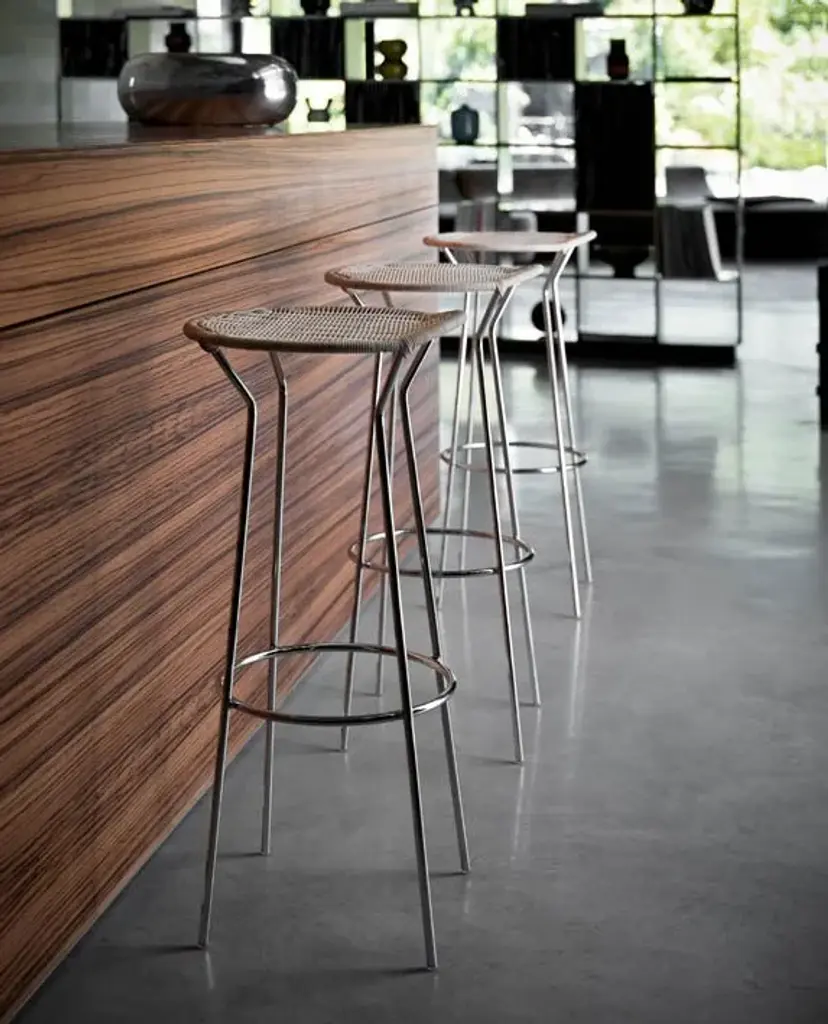 Bar features a simple and timeless design due to its lightweight and family character, which makes it suitable for any domestic or public environment. The stool features a chromed metal frame, with a natural rattan structure, carefully handmade by skilled Italian weavers.Structure made from chrome-plated steel bars 12 mm in diameter. Feet made from semi-transparent PVC. Seat made from natural uncoated pith hand-woven by skilled Italian weavers, 3 mm in diameter.FINISHCover: natural wickerStructure: chromed metalDIMENSIONS (LxDxH)cm 36x36x79 - 14.1” x 14.4” x 31.1”cm 36x36x62 - 14.1” x 14.4” x 24.4”