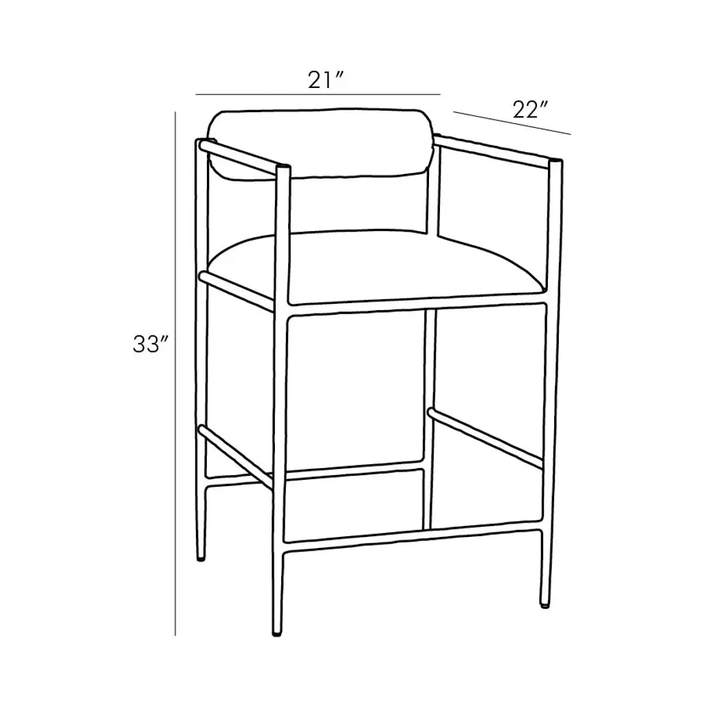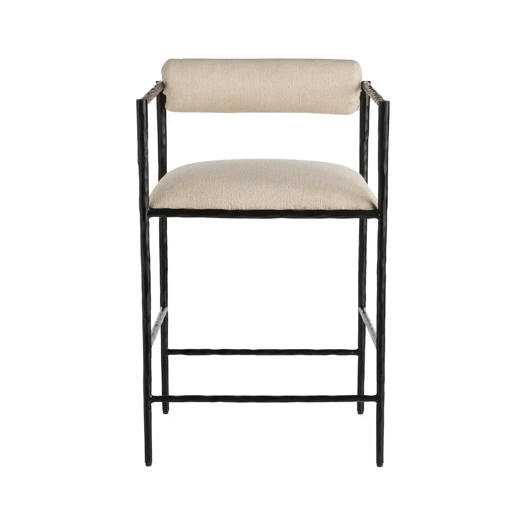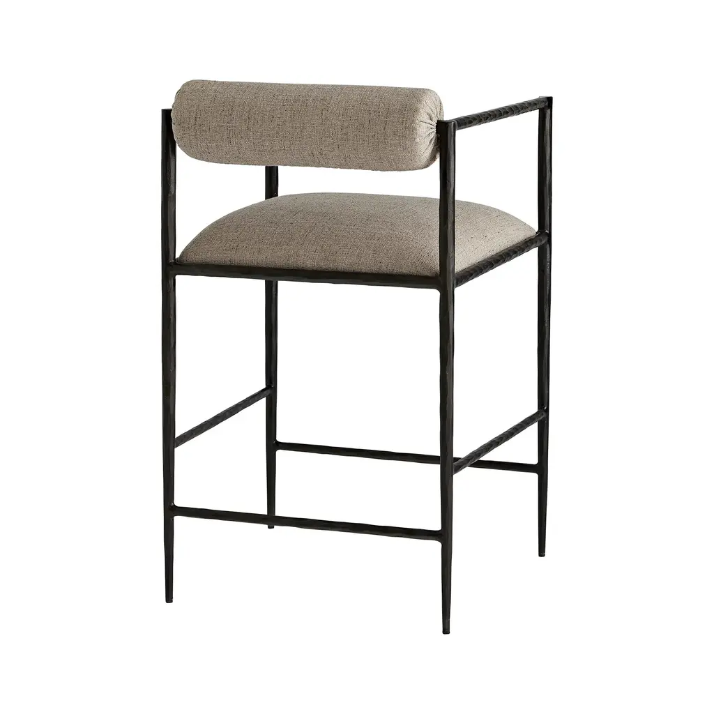 Elevate your interiors with the Barbana Stool from Arteriors. Hand-forged from natural iron, its delicate legs and angular frame exude elegance, while the embroidered upholstery adds a touch of luxury. The tight seat and bolster back cushion provide comfort, making this stool the perfect addition to your kitchen counter or high-top dining space. Highlights