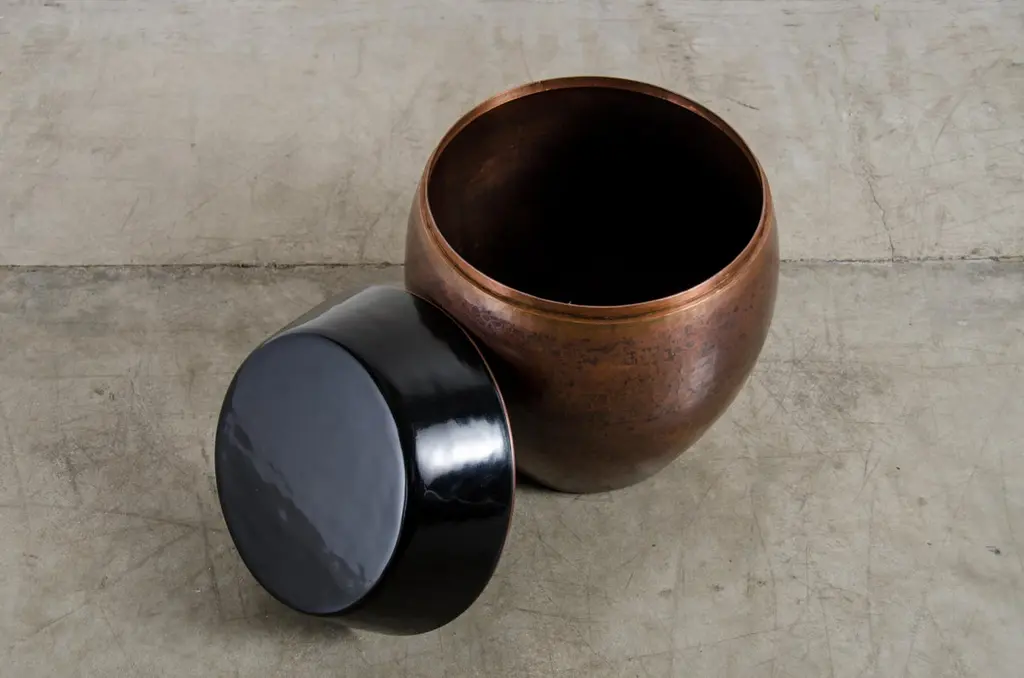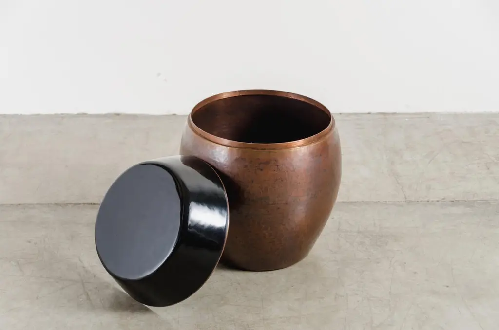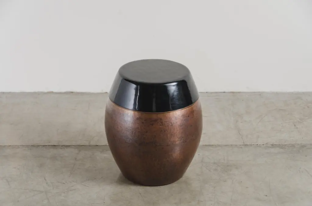 Barrel Storage Drumstool, Antique Copper And Black Lacquer By Robert Kuo