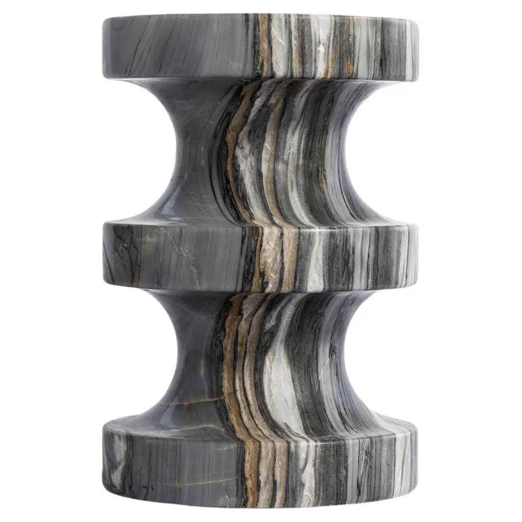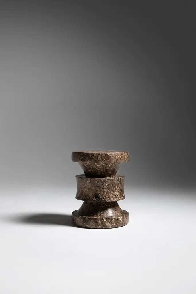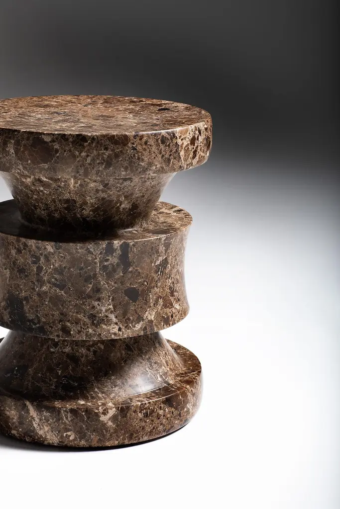 Barth Stool by Le Berre VevaudDimensions: D 37 x H 45 cm.Materials: Brown Emperador Marble.For over 15 years, Raphaël Le Berre and Thomas Vevaud have been writing beautiful pages of interior architecture together. With precision and acuity, they deploy a singular decorative vocabulary, in the manner of the great French ensembliers whose attraction to exceptional craftsmanship, authentic materials and meticulous color schemes they share. From Parisian mansions to London penthouses and Mediterranean resorts, interior designers have a vast field of expression. They love this spirit of cosmopolitanism, which sharpens their curiosity and strengthens their ability to adapt. The duo questions its style according to the lifestyle of its customers, the type of location and the natural environment. Raphaël Le Berre and Thomas Vevaud assert their taste for a certain eclecticism. While the timeless sophistication of Art Deco, the avant-garde spirit of the Bauhaus and the poetry of the Memphis movement continue to guide them, they follow in the footsteps of artist Ado Chale, famous for his experiments with metals and other composite materials, and architect Charles Deacon, creator of singular houses with elliptical curves. Jacques Couëlle’s architectural creations, at the crossroads of mystery and utopia, are also a powerful source of inspiration. Traffic flow, light distribution, functionality and privacy are all imperatives and necessities that are taken seriously, on a par with aesthetic expression.
