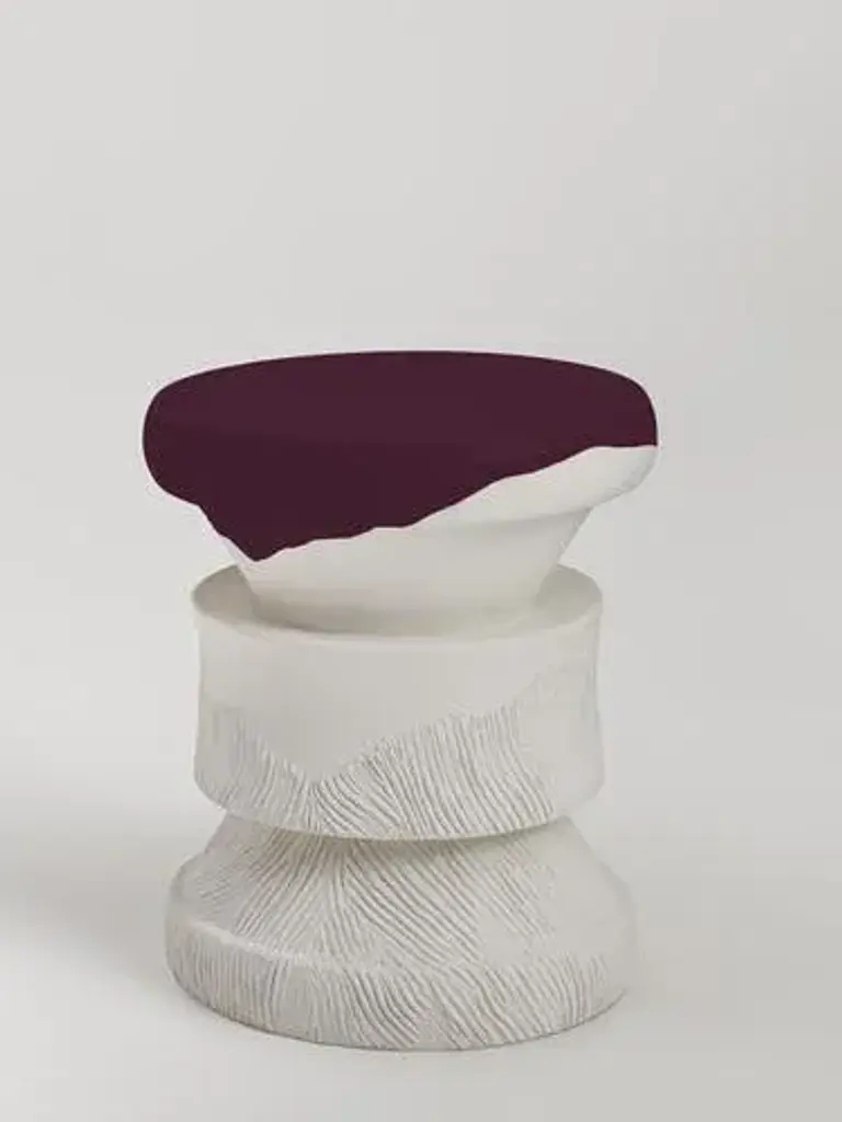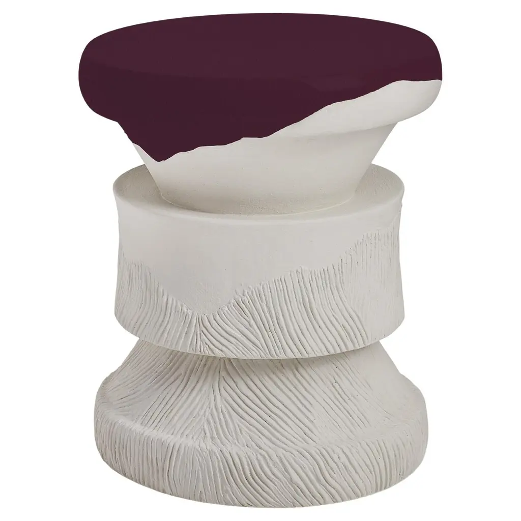 Barth Stool by Le Berre Vevaud Dimensions: D 37 x H 45 cm. Materials: Solid basswood, covered by mineral plaster and lacquered in Aubergine ALV-L0038 glossy color.