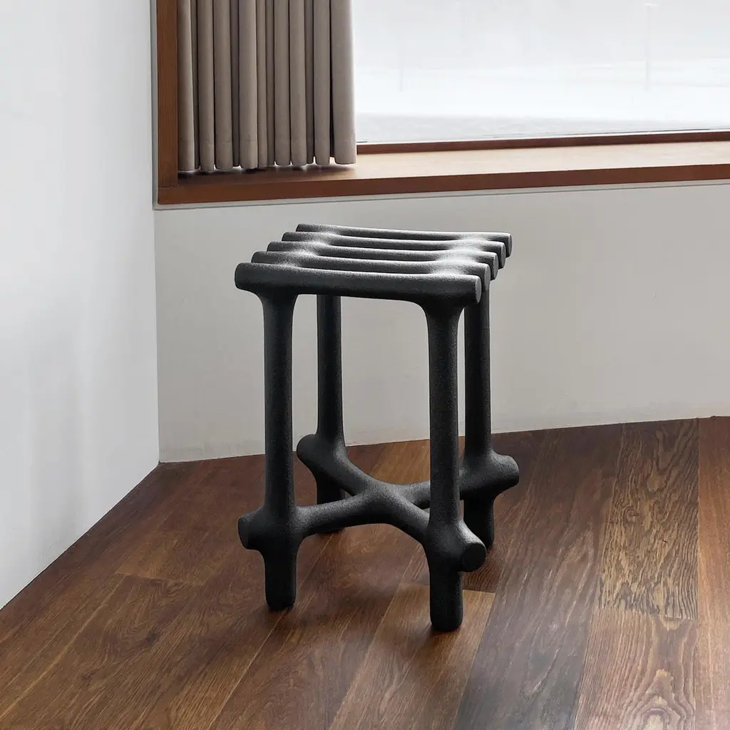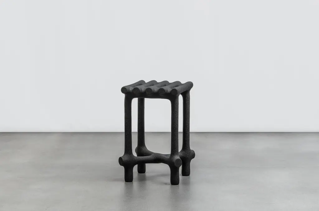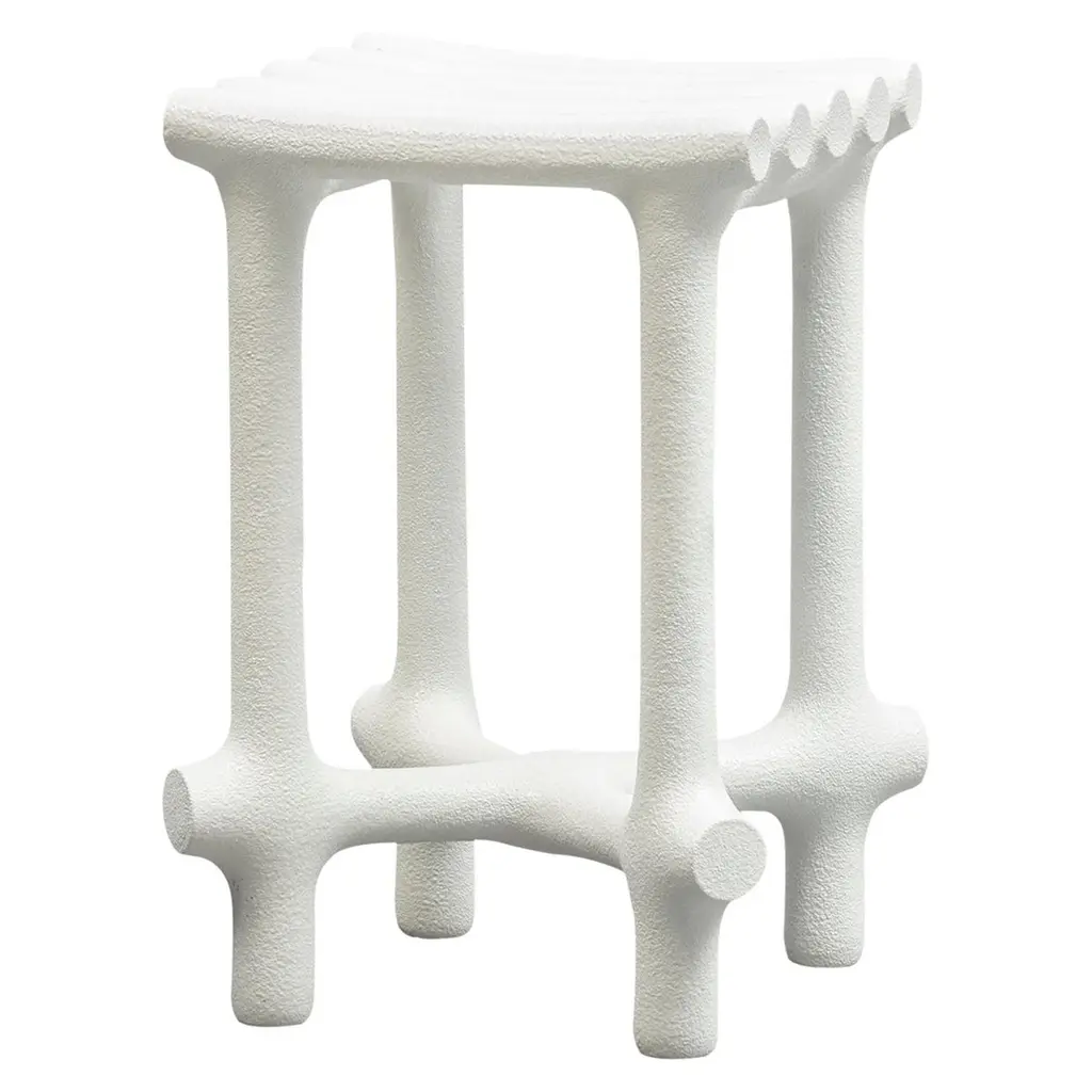 Basic Limited Edition Sculptural Sand and Nylon Stool by Hot Wire ExtensionsLimited EditionMaterials: Waste SLS 3D nylon powder, Sand from sustainable sources.Dimensions: H 48 x W 31 x D 31 cm. Colours: black, white, cream, terracotta, mint.Hot Wire Extensions is a young sustainable design brand, presenting a bold innovative manufacturing process.Exploration is central to our philosophy and the Hot Wire Extensions process is conceivedwith this in mind. Using waste SLS 3D nylon powder, a material that is currently not recycled, and inspired by the way a vine grows around a tree, we reuse the material to create organic bone-like structures builtaround a wire.We design and develop a diverse range of products, furniture and installations as well as bespoke commissions all characterised by our dedication to the mindful exploration ofnew material landscapes.