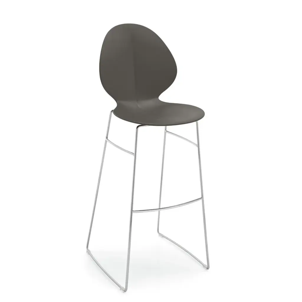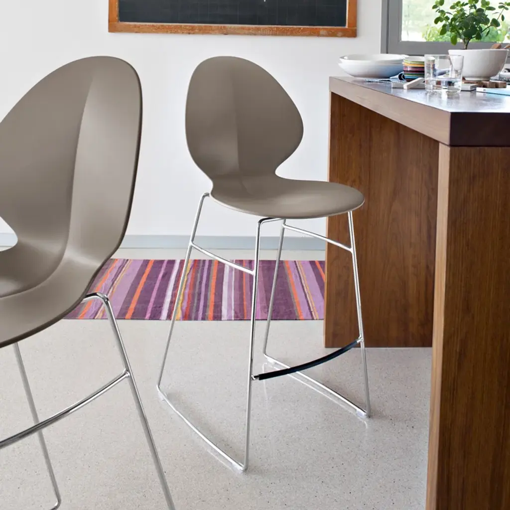 Basil is a funky brightly colored stool with a sleek young design ideal for kitchens and bars. The raised rib in the center of the seat recalls a basil leaf giving this product its name and guaranteeing optimum comfort. Great attention to detail is also revealed by the plastic-covered footrest. The stool represents a great choice in the kitchen or a lounge bar.