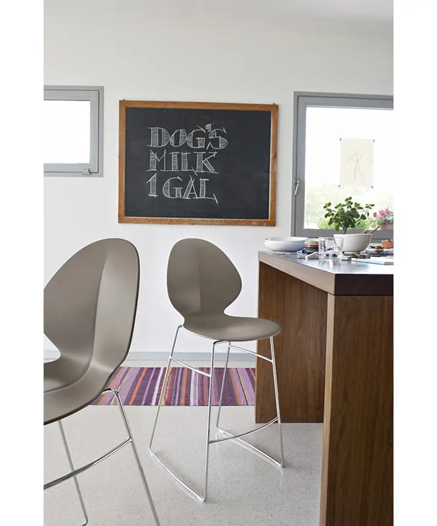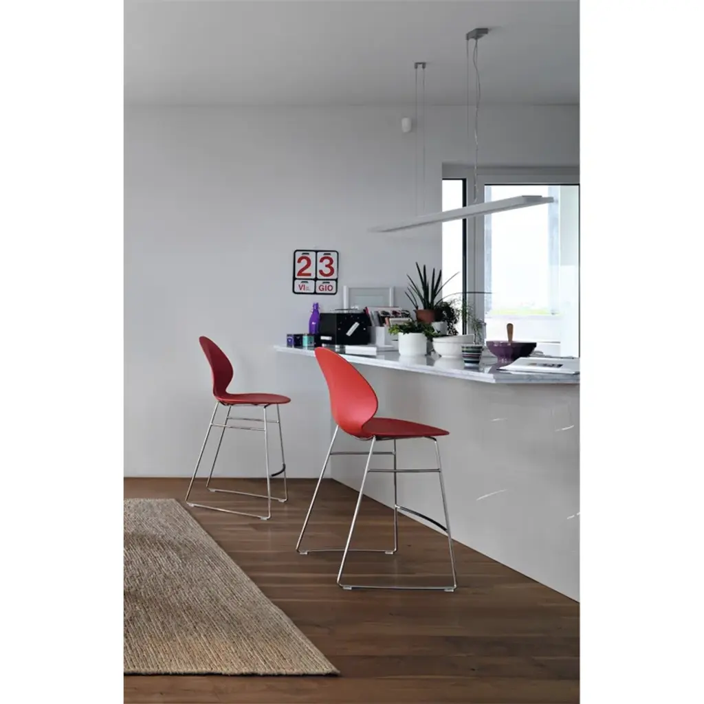 Basil is a funky brightly colored stool with a sleek young design ideal for kitchens and bars. The raised rib in the center of the seat recalls a basil leaf giving this product its name and guaranteeing optimum comfort. Great attention to detail is also revealed by the plastic-covered footrest. The stool represents a great choice in the kitchen or a lounge bar.