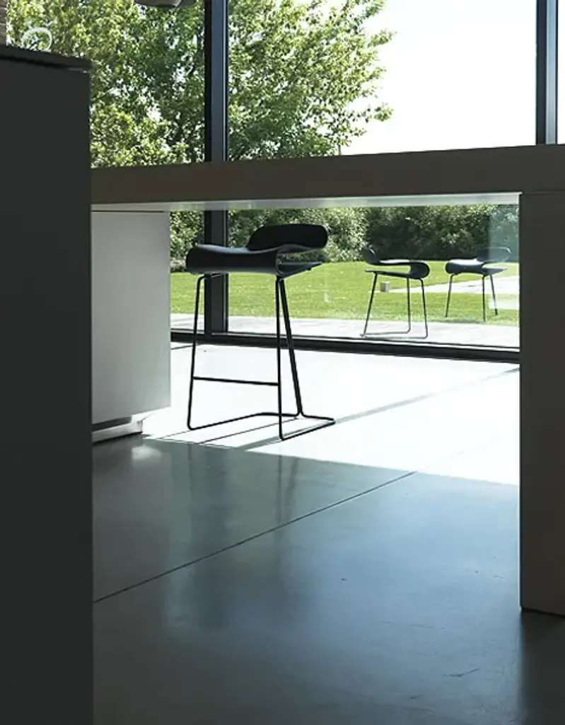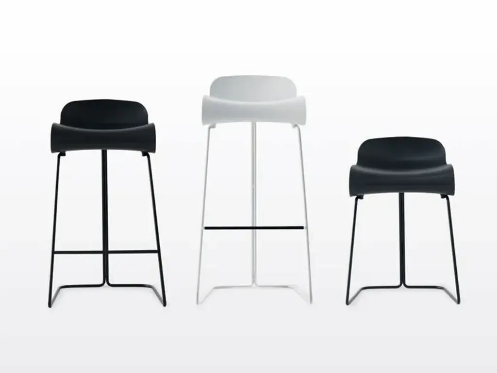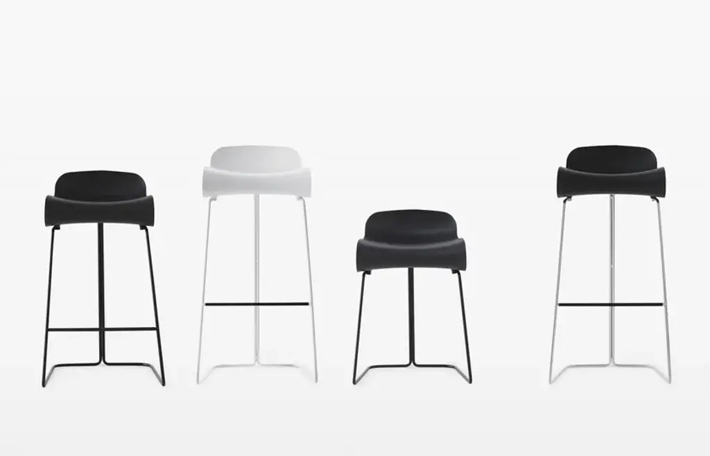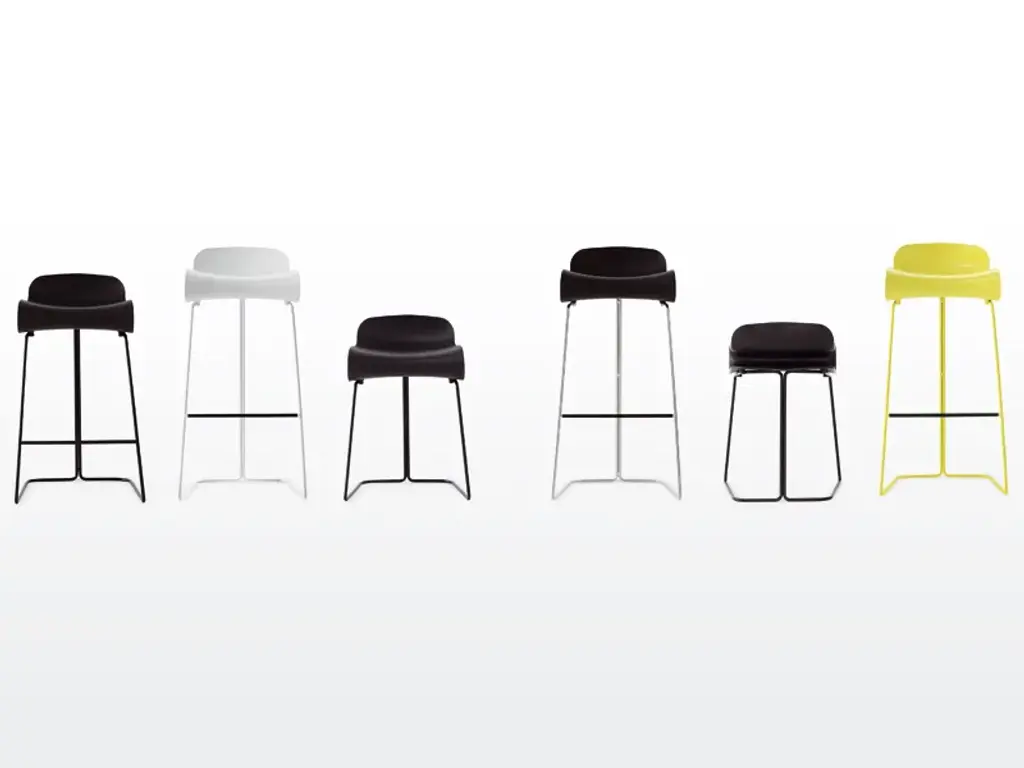 Research in the field of design is constantly driven by new shapes, technologies and materials. The BCN stool is the result of one of these explorations, carried out in collaboration with the designer Harry-Paul It all started with a shape, an ergonomic and sinuous seat, followed by choosing a technology and a material that are uncommon in the furniture sector: PBT, a plastic that is both strong and flexible.This led to one of our iconic products, a stool that is now available in various versions: high, medium or low with a slide-frame base, with beech wood legs or with a height-adjustable structure. The seat and the bases are available in a variety of colours.