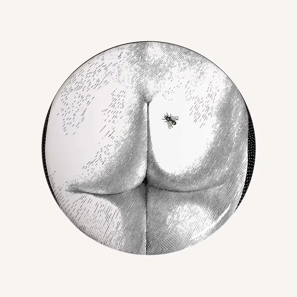 This wooden stool is the ideal expression of Fornasetti's philosophy and provocative, irreverent style. A piece of furniture that is at once functional and unconventional, it expresses the perfect balance of elegance and irony that typifies the Atelier. The stool is made of silk-screened and hand-lacquered wood. For cleaning, it's recommended the use of a damp cloth with no detergent.