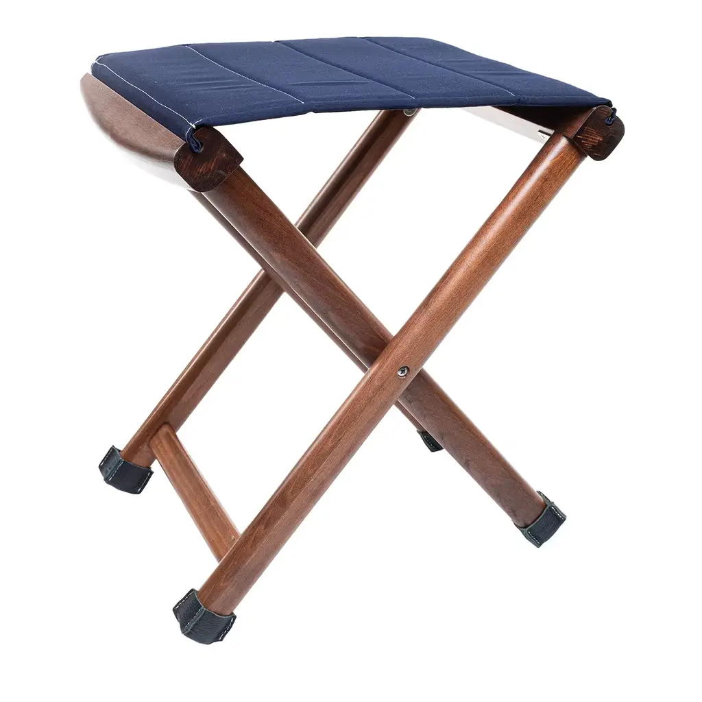 Practical, top-quality, and ultra-resistant, this folding stool was designed to provide an unexpectedly comfortable seating experience, with its soft seat made of water-repellent, beige fabric. The crossing design of the legs allows it to be quickly folded and stowed, while great support is guaranteed by the top-quality wood chosen for the frame. Brown leather caps finish the legs' tips to prevent floor scratching.