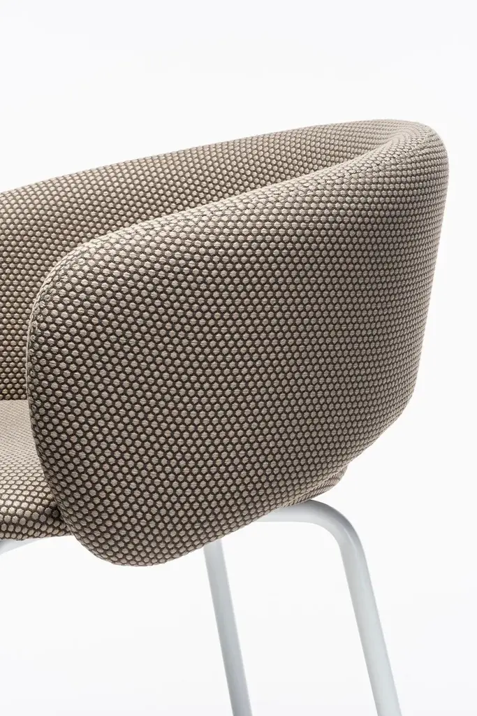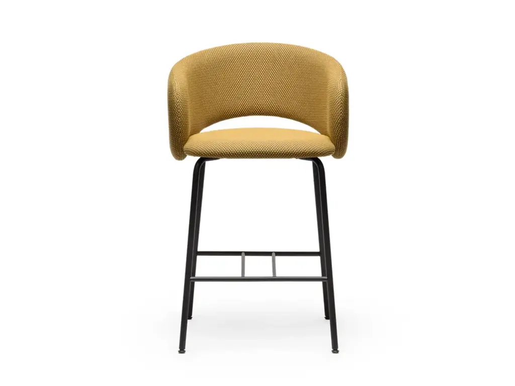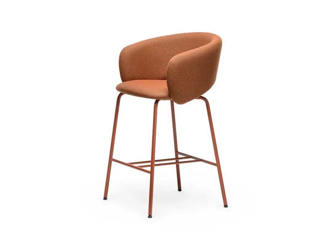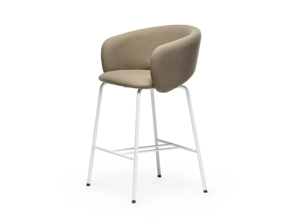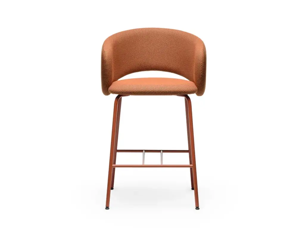 Bel M-SG-65 is a stool with base in black, white, or terracotta powder-coated metal. Upholstered seat in fabric.